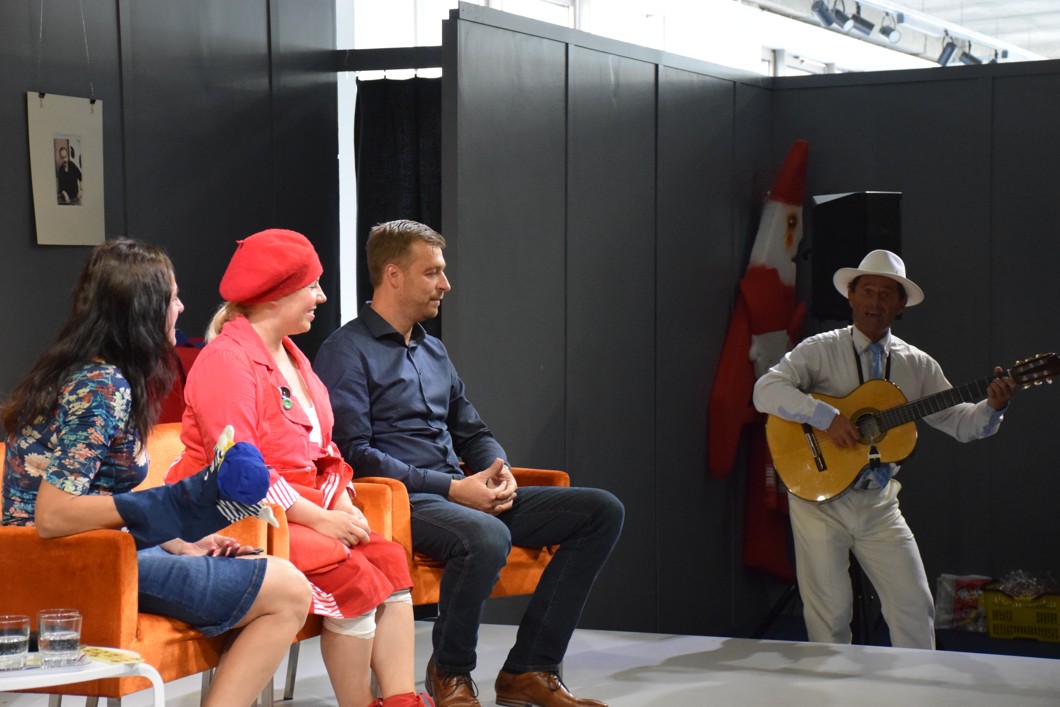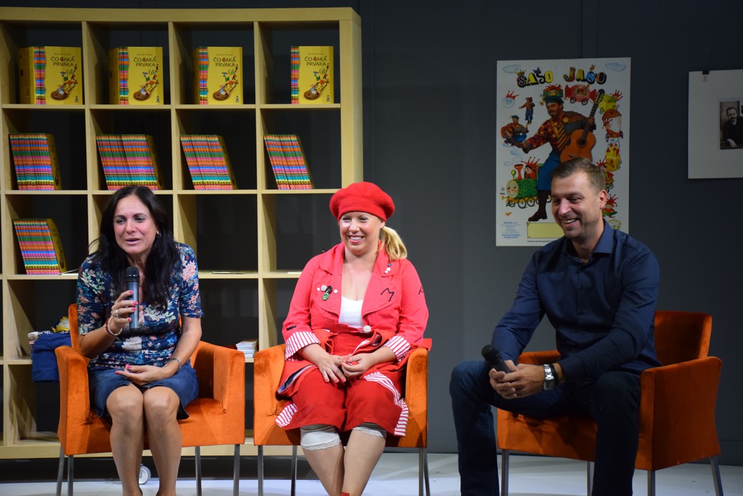 Účinkuje bábkoherečka Barbora Krajč Zamišková, editorky knihy Milica Matejková a Mária Števková a primátor mesta Piešťany, Miloš Tamajka.