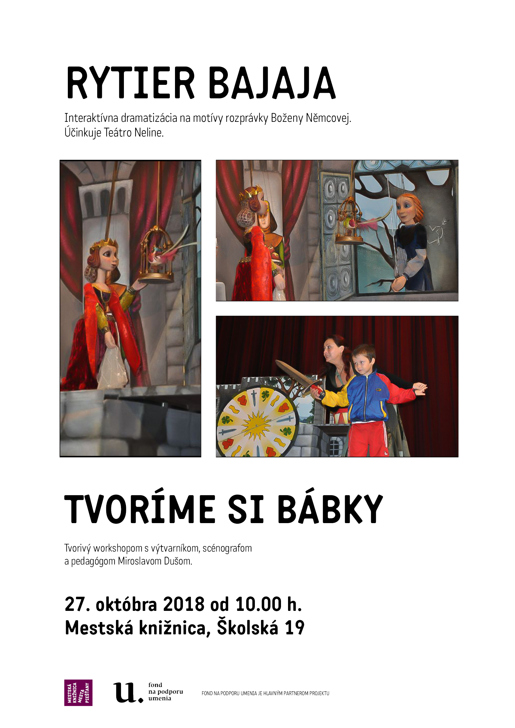 Miesto konania Piešťany (Slovensko) Descripton Interaktívna dramatizácia na motívy rozprávky Boženy Němcovej. Účinkuje Teátro Neline Organizer Mestská knižnica mesta Piešťany Súvisiace osobnosti Němcová, Božena References (1) - Podujatie