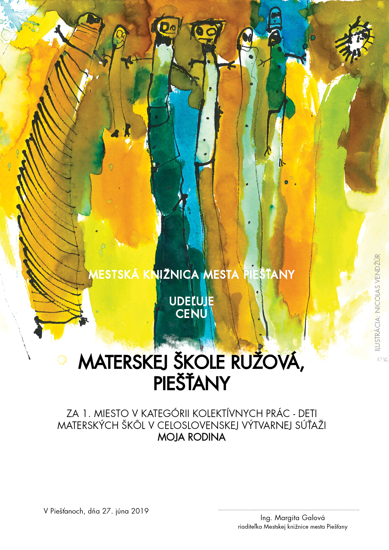 Miesto konania Piešťany (Slovensko) Descripton Výtvarná súťaž pre deti materských škôl. Podujatie projektu Poď z ulice do knižnice IV. Z verejných zdrojov podporil Fond na podporu umenia.