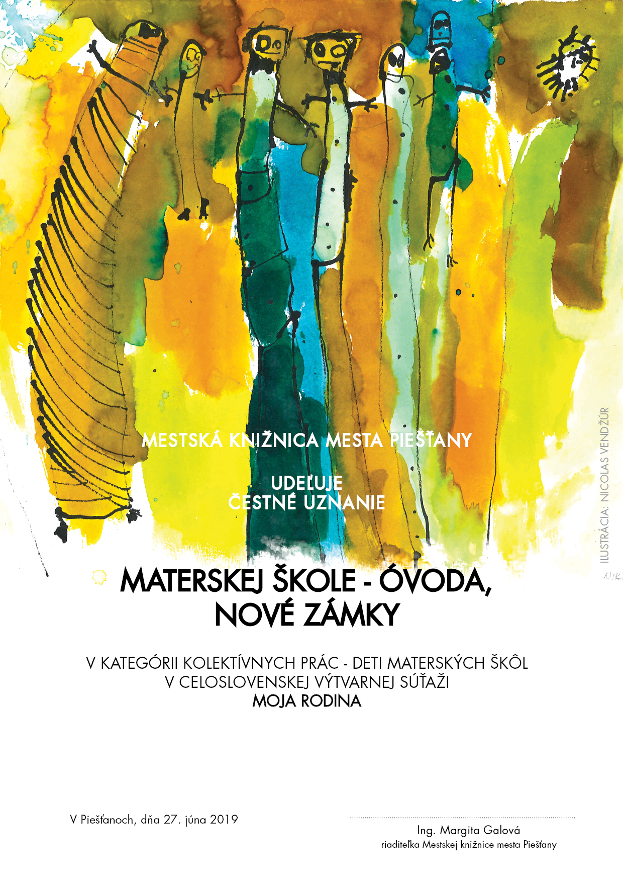 Miesto konania Piešťany (Slovensko) Descripton Výtvarná súťaž pre deti materských škôl. Podujatie projektu Poď z ulice do knižnice IV. Z verejných zdrojov podporil Fond na podporu umenia.