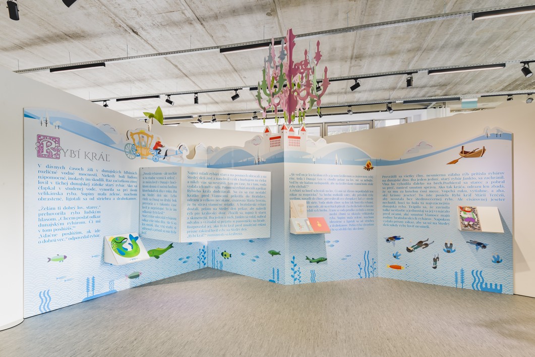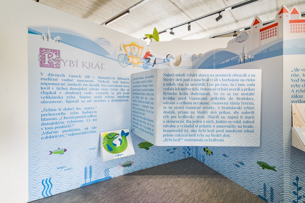 Miesto konania Piešťany (Slovensko) Descripton Trojrozmerná interaktívna výstava inšpirovaná knižnou úpravou pop up na motívy povesti Márie Ďuríčkovej Rybí kráľ.