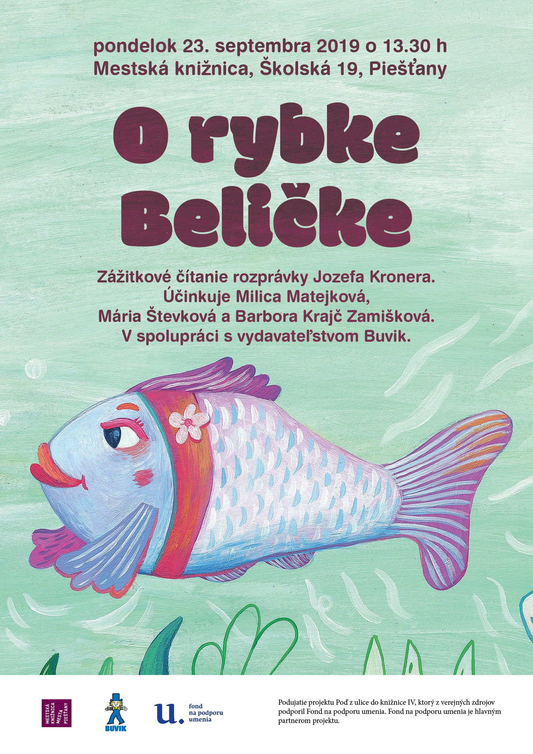 Miesto konania Piešťany (Slovensko) Descripton Zážitkové čítanie rozprávky Jozefa Kronera. Účinkujú Milica Matejková a Mária Števková. Moderuje Barbora Krajč Zamišková.