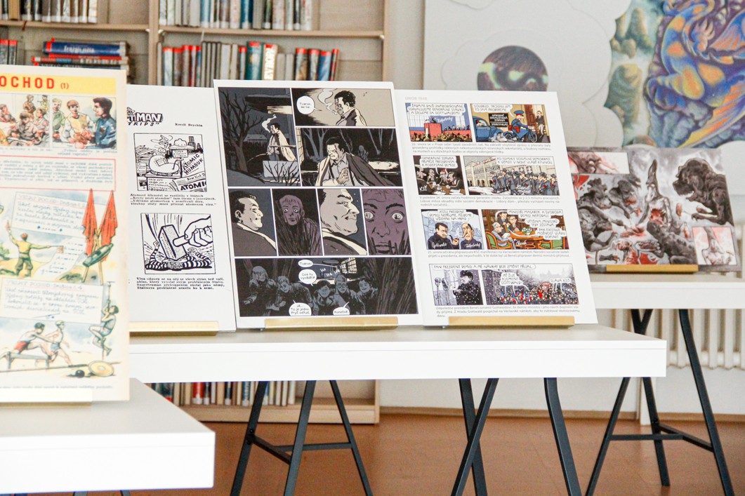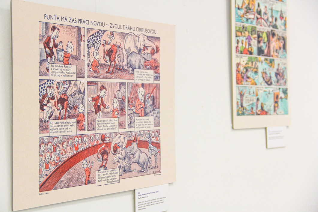 Historik komiksu Pavel Kořínek pripravil panely doplnené o ukážky komiksových ilustrácií. Jeden panel predstavuje jedno desaťročie a opisuje vtedy aktívnych a známych kresliarov v dobovej spoločensko-politickej situácii. Uvidíte napríklad prvorepublikový komiks od Josefa Ladu, Ondřeja Sekoru, Rýchle šípy, komiksy z obdobia komunistického režimu aj súčasných českých a slovenských autorov.Organizer Mestská knižnica mesta Piešťany