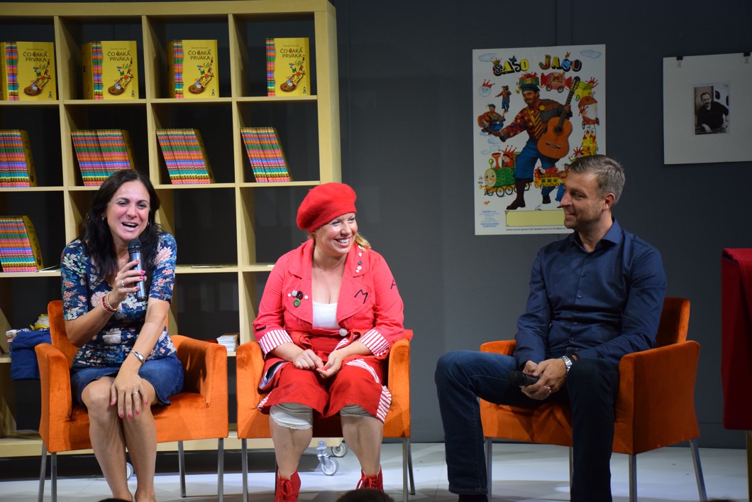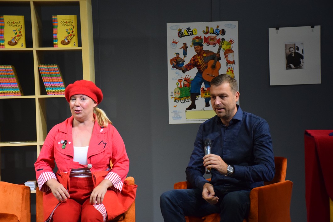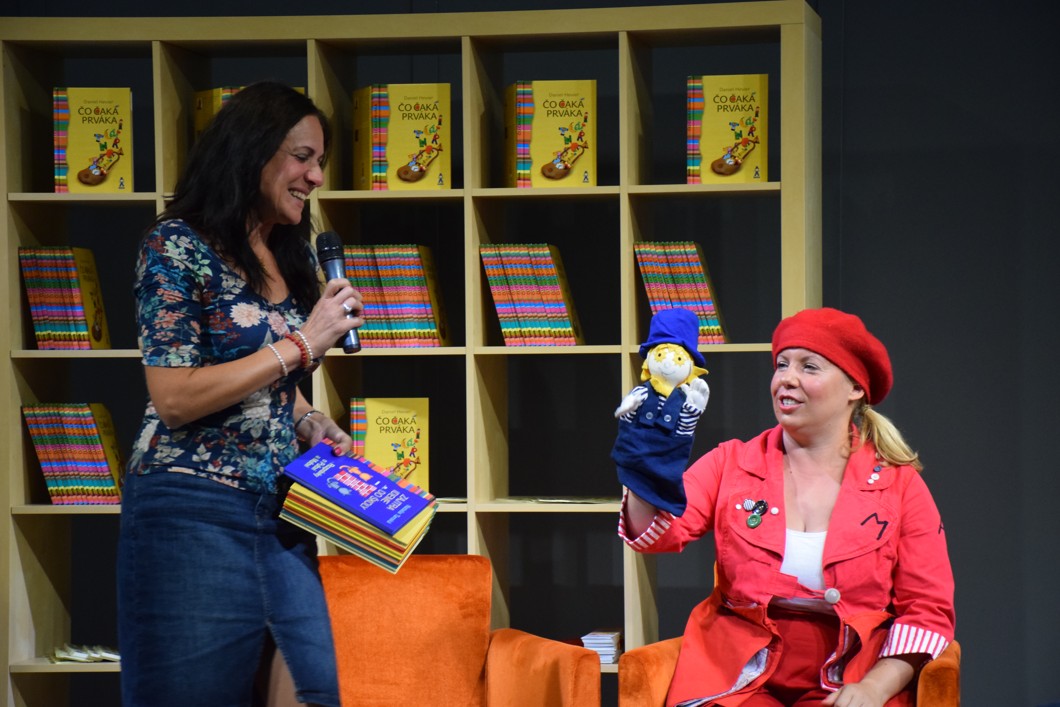 Účinkuje bábkoherečka Barbora Krajč Zamišková, editorky knihy Milica Matejková a Mária Števková a primátor mesta Piešťany, Miloš Tamajka.