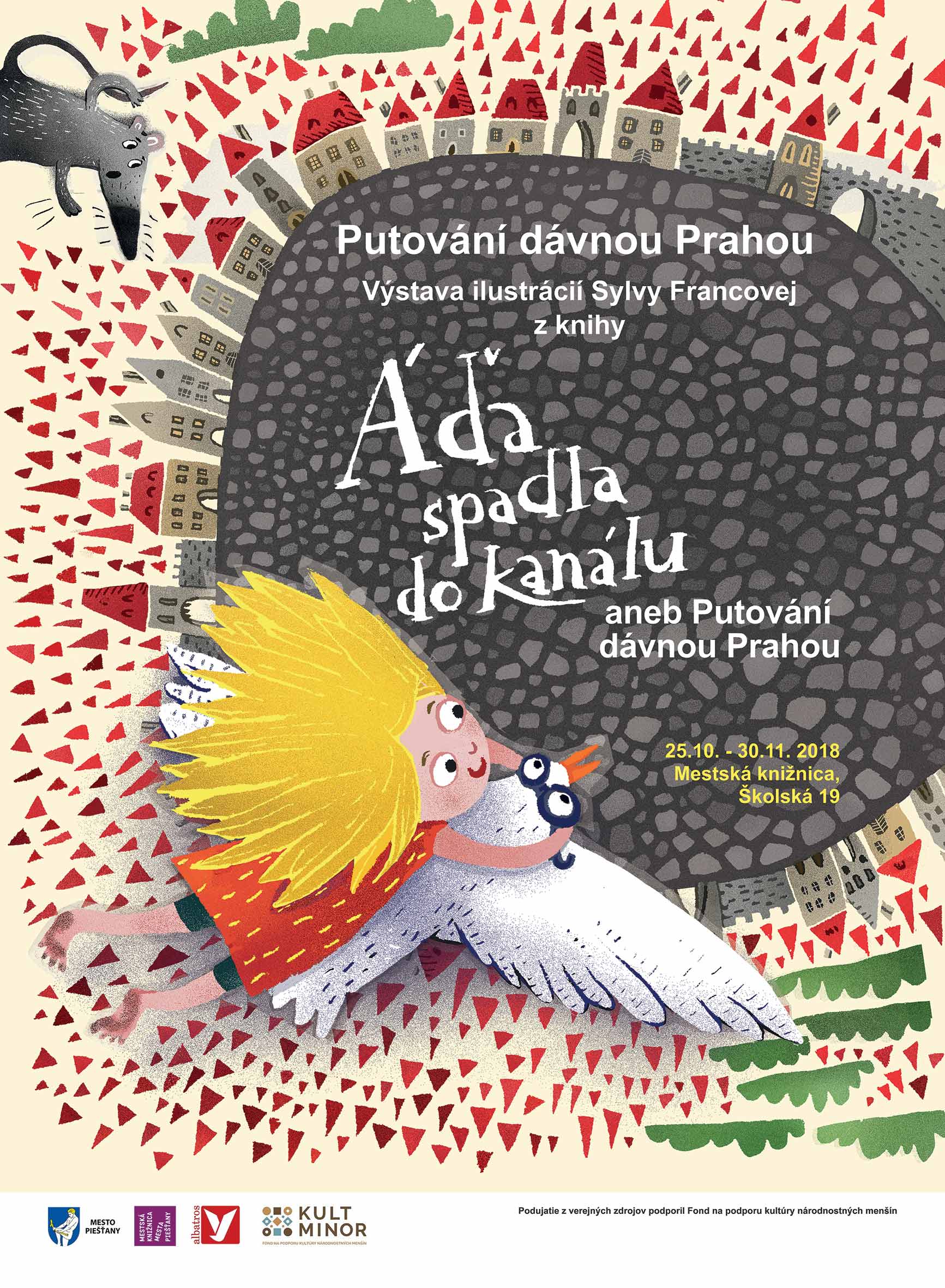 Miesto konania Piešťany (Slovensko) Popis Výstava vychádza z obrazovej knihy (nielen) pre deti „Áďa spadla do kanálu aneb Putování dávnou Prahou“ od spisovateľky a ilustrátorky Sylvy Francovej. Kniha zoznamuje čitateľov s históriou, životom v dobách minulých a s rôznymi pražskými pamätihodnosťami skrz príbeh dievčatka Ádi, ktorá sa ocitla v tajomnej Prahe predminulého storočia a s novými kamarátmi hľadá cestu k svojej sestre, dvojčaťu.