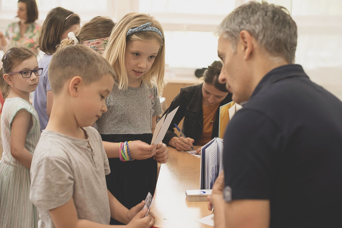 Miesto konania Piešťany (Slovensko) Popis Prezentácia spojená s dramatizáciou. Účinkujú český spisovateľ Daniel Rušar, slovenská ilustrátorka Adely Režnej a bábkoherec Martin Kollár. Spojené s výstavou kníh.