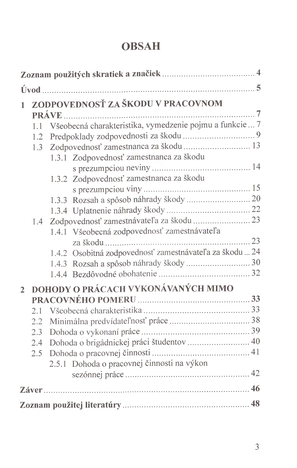 Zodpovednosť za škodu v pracovnom práve a dohody o prácach vykonávaných mimo pracovného pomeru vo svetle aktuálnej slovenskej pracovnoprávnej úpravy