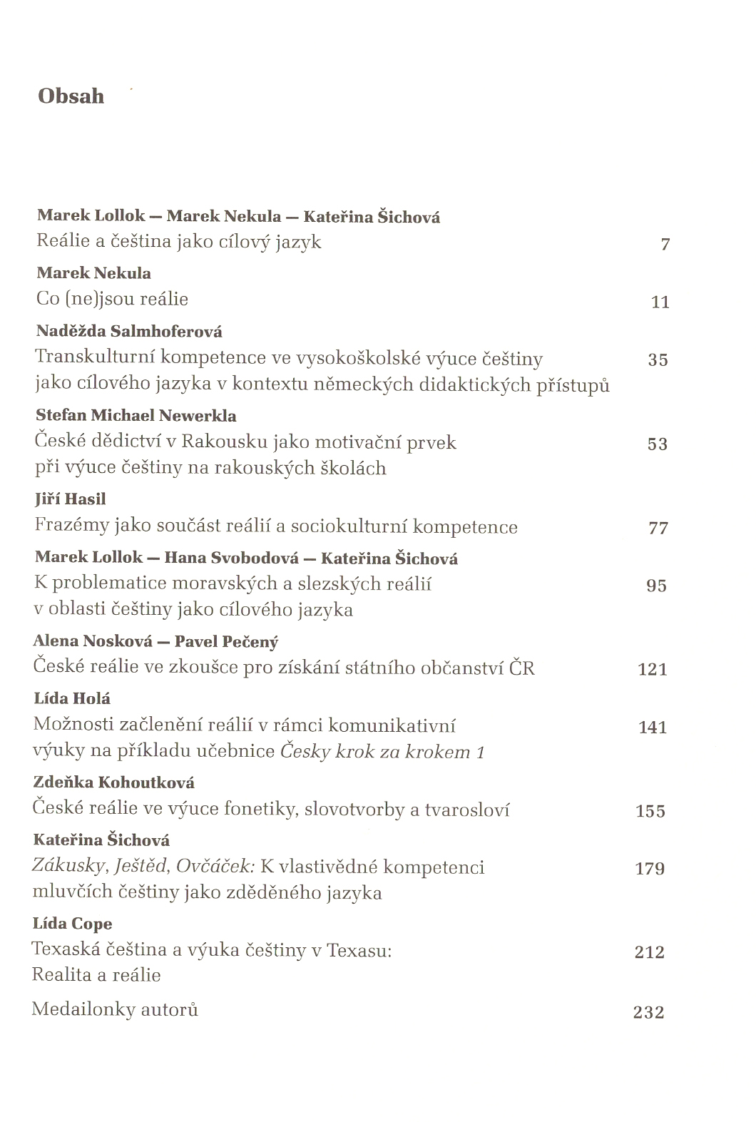 Názov Reálie a čeština jako cílový jazyk Aut.údaje Marek Lollok, Marek Nekula, Kateřina Šichová (vyd.) Ďalší autori Lollok Marek 1985- (Editor)