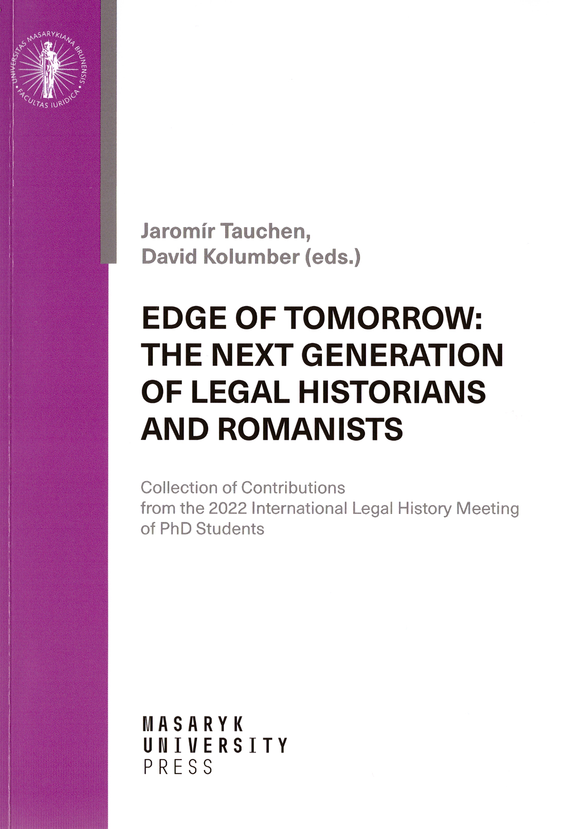 Názov Edge of tomorrow: the next generation of legal historians and romanists Podnázov collection of contributions from the 2022 international legal history meeting of PhD students Aut.údaje Jaromír Tauchen, David Kolumber (eds.) Ďalší autori Tauchen Jaromír (Editor)