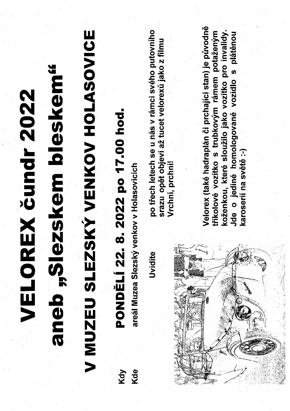 Klíčová slova putovní sraz, Velorex, Muzeum Slezský venkov