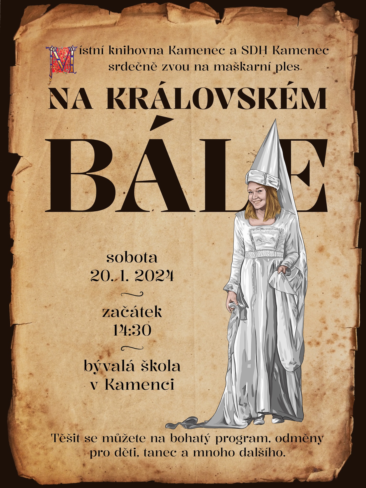 Title Na královském bále Other title maškarní ples pro děti Event type Culture, Associations Key words akce pro veřejnost, akce pro děti, maškarní ples, Místní knihovna Kamenec, SDH Kamenec Date and place of event 20. 01. 2024, 14:30 hod.