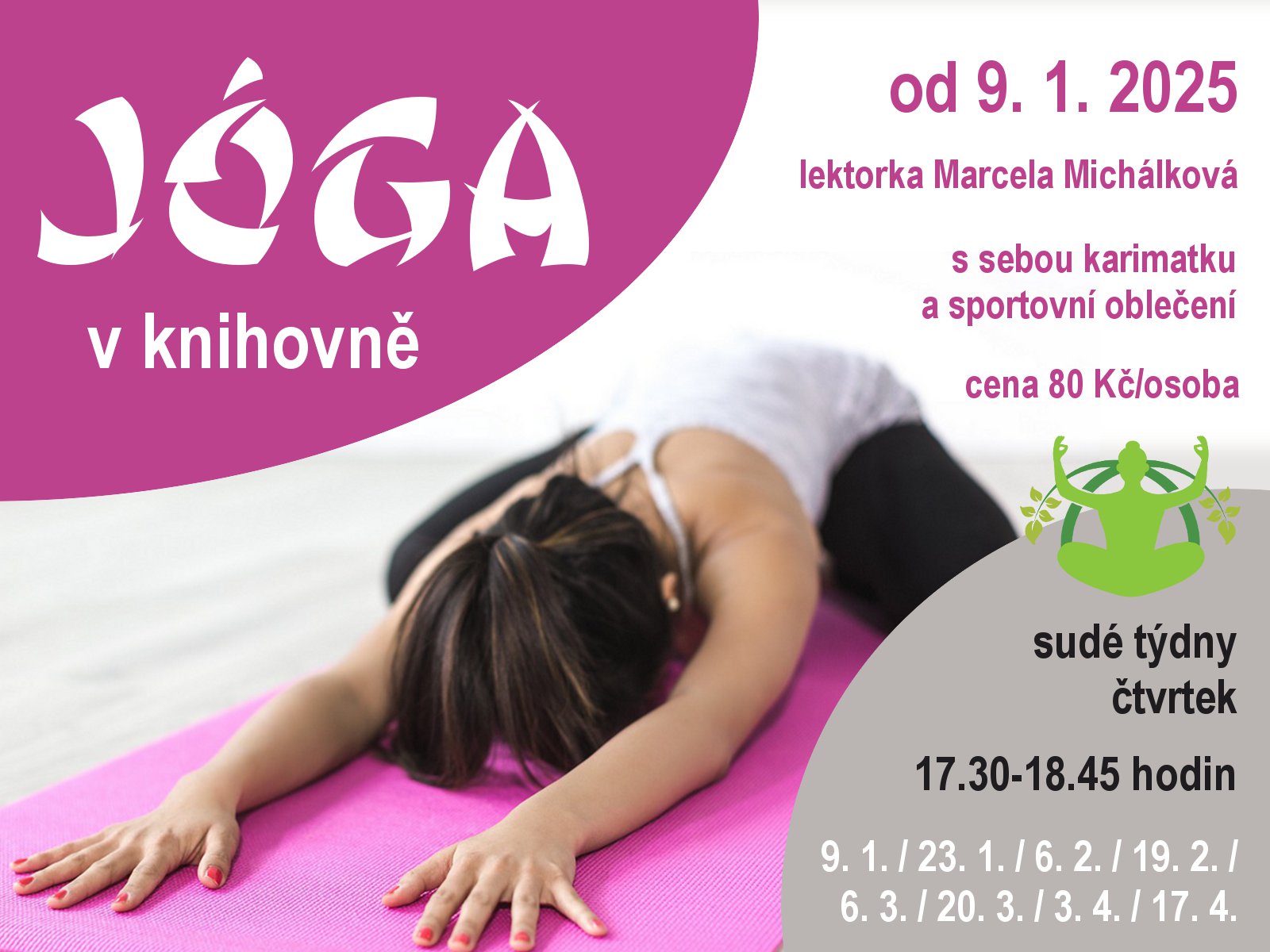 About eventCvičení jógy pod vedením lektorky Marcely Michálkové. S sebou si vezměte karimatku a sportovní oblečení. Cena je 80 Kč na osobu. Cvičení bude probíhat vždy ve čtvrtek v sudé týdny (výjimečně i jiný den).