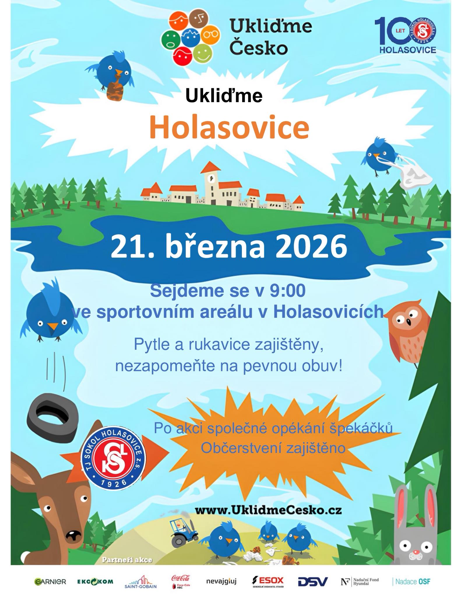 Title Ukliďme Holasovice Event type Associations Key words akce pro veřejnost, celostátní akce, Ukliďme Česko, TJ Sokol Holasovice Date and place of event 21. 03. 2026, 09:00 hod. - 21. 03. 2026, 12:00 hod.