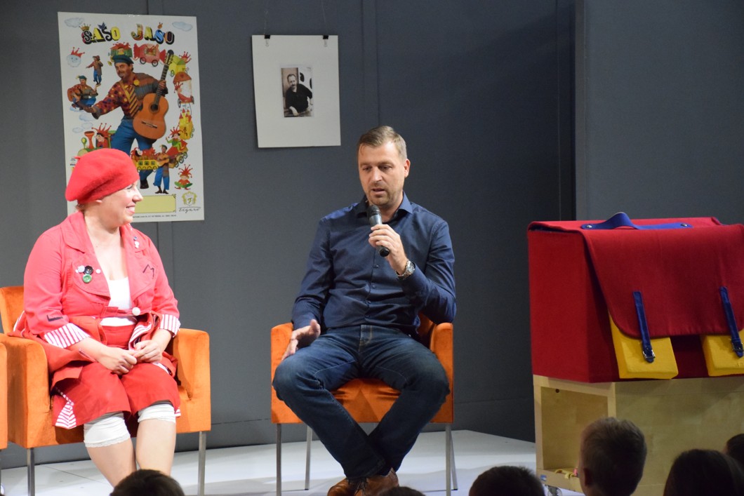 Účinkuje bábkoherečka Barbora Krajč Zamišková, editorky knihy Milica Matejková a Mária Števková a primátor mesta Piešťany, Miloš Tamajka.