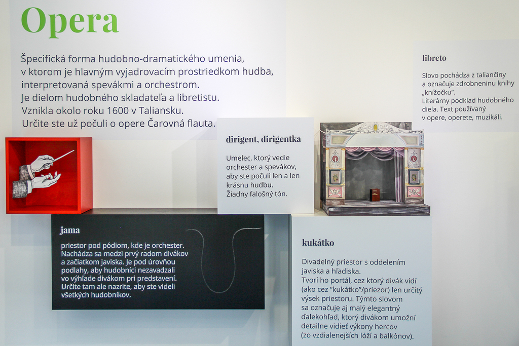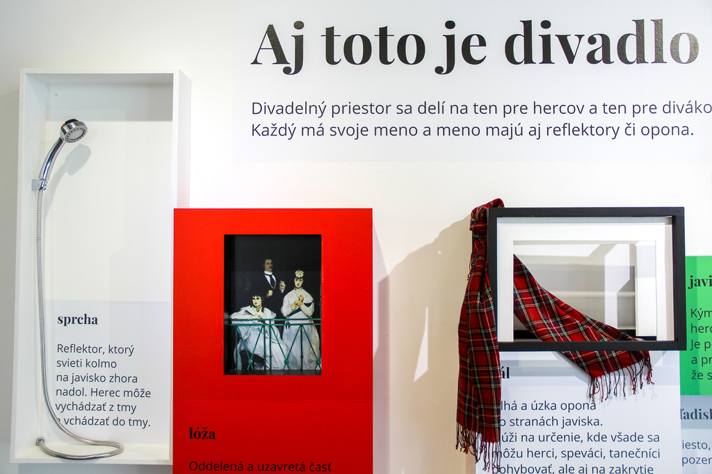 Výstava je koncipovaná ako maxislovník slov, ktoré sa používajú v divadle. Vychádza z publikácie Slovník divadelných profesionalizmov autoriek Oľgy Orgoňovej, Aleny Bohunickej, Zdeny Pašuthovej a Barbory Krajč Zamiškovej. Publikáciu vydala Vysoká škola múzických umení v Bratislave v decembri minulého roka. Niektoré z profesionalizmov boli vybrané a upravené pre detského čitateľa a v mesiacoch február až jún 2020 uverejňované v časopise Slniečko. Súbežne v tomto období vznikali podklady k výstave. Interaktívna expozícia pozostáva z veľkoplošných ilustrácií, z reálnych artefaktov, z originálov kresieb bábkarských scénografov a divadelných plagátov. Autorkou výtvarného konceptu je Michaela Zajačková. Kurátorsky sa na nej podieľa Barbora Krajč Zamišková. Pod výtvarno-priestorové riešenie, technickú realizáciu a ilustrácie sa podpísali Michaela Zajačková, Juraj Žilinčár, Michaela Urbanová, Sara Bahulová. Výpožičky objektov, nákresov a plagátov pochádzajú zo Slovenského centra dizajnu, od Juraja Poliaka, Barbory Šajgalíkovej, Miloša Koptáka, Kataríny Ilkovičovej, Matúša Lelovského a študentov KBT DF VŠMU. Výstavu dramaturgicky zostavila Margita Galová a potrvá v priestoroch mestskej knižnice do 16. októbra 2020. V prípade komentovanej prehliadky je pre skupiny návštevníkov pripravený zaujímavý divadelný kvíz. Výtvarná expozícia je súčasťou medzinárodného festivalu rozhlasových rozprávok Zázračný oriešok. Kniha v rozhlase – rozhlas v knihe, ktorého 11. ročník sa uskutoční v dňoch 28. septembra – 1. októbra 2020 v Piešťanoch.Organizer Mestská knižnica mesta Piešťany