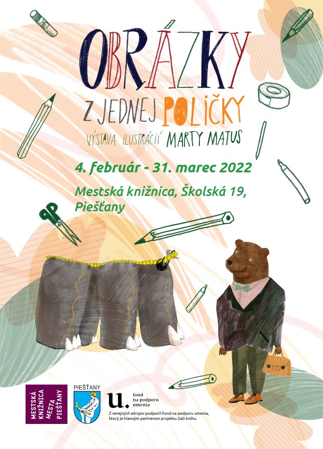 Miesto konania Piešťany (Slovensko) Descripton Výstava ilustrácií Marty Matus z kníh pre deti.