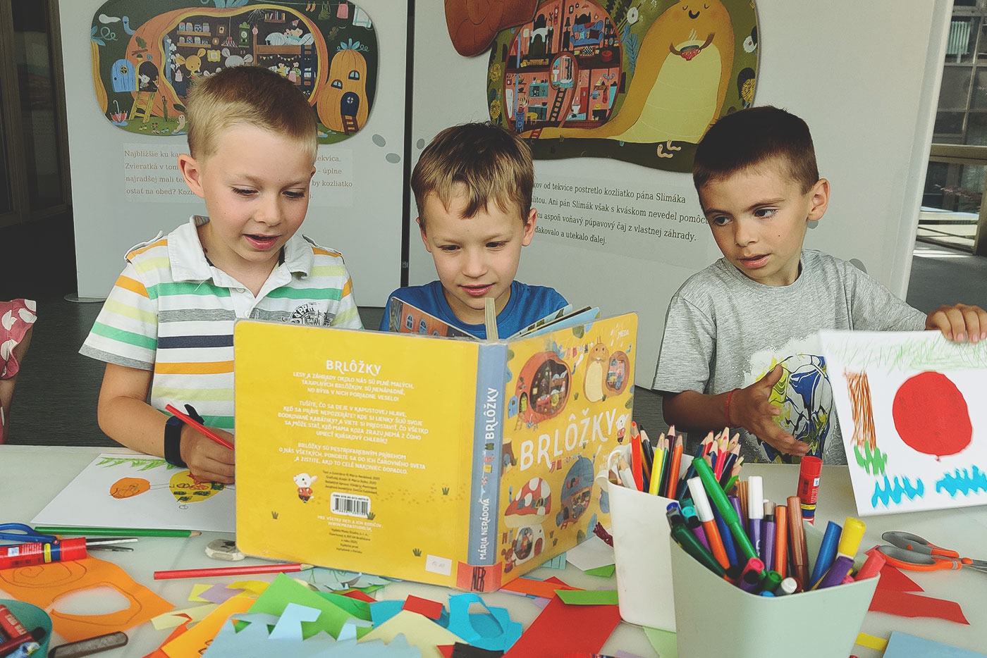 Komentovaná prehliadka výstavy a literárno-výtvarný workshop na motívy knihy Márie Nerádovej Brlôžky.