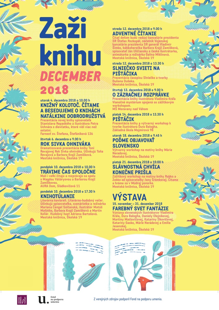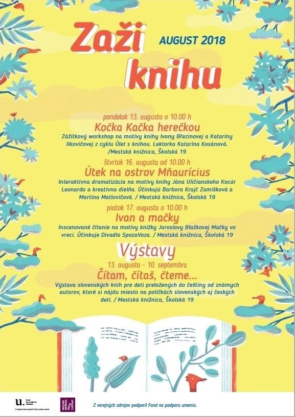 Date 30.06.2018 Annotation Projekt Zaži knihu nadvazuje na dlhoročnú tradíciu medzinárodných aktivít piešťanskej knižnice, ktoré si kladú za cieľ rozvíjať čítanie, podporovať vzdelanosť, prezentovať a propagovať literatúru pre deti rozmanitými a inovatívnymi formami, príťažlivými pre dnešné dieťa. Náš projekt má zároveň ambíciu prezentovať slovenských a českých tvorcov (spisovateľov, ilustrátorov, vydavateľov, animátorov, hercov) a predstaviť tak pozitívne okamihy a udalosti posledných 100 rokov s dôrazom na spoločnú históriu oboch národov. Naša knižnica tak prispeje k oslavám významných historických výročí v roku 2018 (100. výročie vzniku Československej republiky). Prostredníctvom kultúrnych, umeleckých a odborných aktivít chceme prezentovať české a slovenské umenie pre deti s cieľom oboznámiť mladú generáciu s obsahom nášho spoločného kultúrneho dedičstva a zvýšiť povedomie o dôležitosti rozvíjania a upevňovania vzájomných česko-slovenských vzťahov. Aktivity projektu: čítania z tvorby českých a slovenských autorov, divadelné prezentácie, výstavy českých a slovenských ilustrátorov, komponované literárne programy a workshopy, túlavý antikvariát, divadelné predstavenia, seminár zameraný na prezentáciu tvorivých aktivít slovenských a českých knižníc. Českú a slovenskú literárnu tvorbu budeme prezentovať v rôznych podobách – literárnej, výtvarnej, divadelnej, rozhlasovej i animovanej.