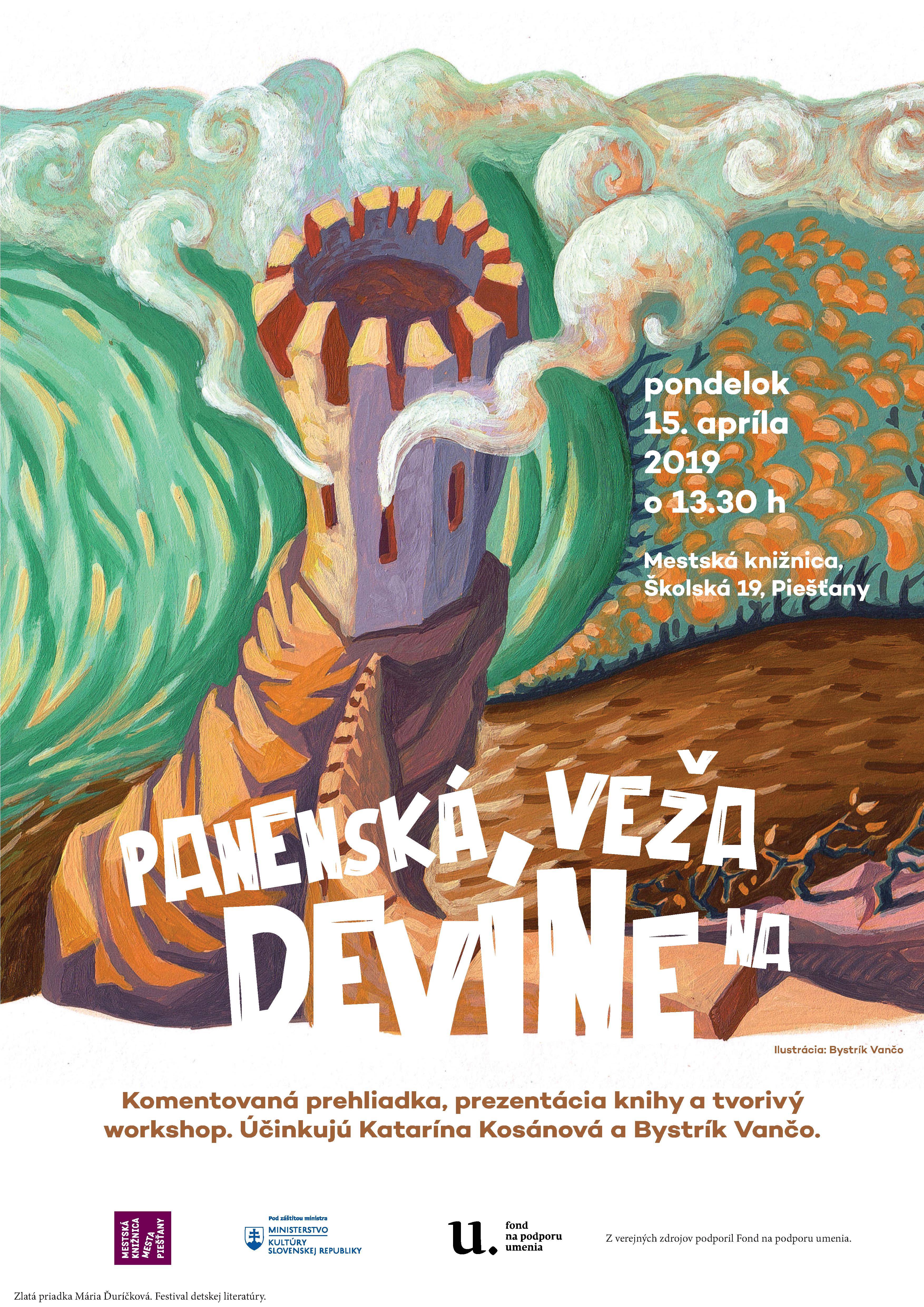 Date 20.04.2019 Annotation Mestská knižnica mesta Piešťany pripravila v dňoch 01. 04. 2019 - 29. 06. 2019 výstavu Povesti, báje a historické obrázky. Výstava bola súčasťou Festivalu detskej literatúry Zlatá priadka Mária Ďuríčková, ktorý sa konal pri príležitosti 100. výročia narodenia Márie Ďuríčkovej pod záštitou ministerky kultúry Slovenskej republiky Ľubice Laššákovej a predsedu Trnavského samosprávneho kraja Jozefa Viskupiča. Výstava predstavovala ilustrácie a veľkoplošné objekty Bystríka Vanča z kníh Márie Ďuríčkovej – Dunajská kráľovná a Prešporský zvon. Jedným z množstva sprievodných podujatí bol i workshop Panenská veža na Devíne. Workshopu, ktorý sa konal 15. apríla 2019 v Mestskej knižnici, predchádzala komentovaná prehliadka výstavy. Ilustrátor kníh Dunajská kráľovná a Prešporský zvon Bystrík Vančo za asistencie lektorky Kataríny Kosánovej previedli deti výstavou a oboznámili ich s tvorbou Márie Ďuríčkovej a jej najznámejšími povesťami. Obľúbená autorka mnohých knižiek pre deti s nadšením zbierala materiály pre svoje povesti, v ktorých naplno rozvinula svoj rozprávačský talent. Veľmi si želala, aby najmä mladí ľudia spoznali históriu nášho hlavného mesta. A tak im ponúkla pútavo napísané povesti: Kačacia fontána, O Zelenom poľovníkovi, Rytier a drak, Panenská veža na Devíne, Čertov obraz, Povesť o Čiernej panej na Michalskej veži - spolu až 26 dávnych príbehov väčšinou opradených fantáziou, no čiastočne aj realistických. Samozrejme, ak sú pútavé povesti doplnené nádhernými ilustráciami skúseného a oceneného ilustrátora Bystríka Vanča, úspech je zaručený. Ilustrácie Bystríka Vanča sú venované predovšetkým legendám a klasickým slovenským rozprávkam. Snaží sa v nich vystihnúť magickú atmosféru, zároveň však do nich pridáva už súčasné videnie. V ilustráciách využíva sýtu, žiarivú farebnosť a vytvára veľké farebné plochy, do ktorých vkladá svoje postavy a predmety. Jeho rozprávanie nadchlo návštevníkov výstavy a v rámci workshopu vytvorili vlastné ilustrácie k povestiam Márie Ďuríčkovej. Keywords výstavy