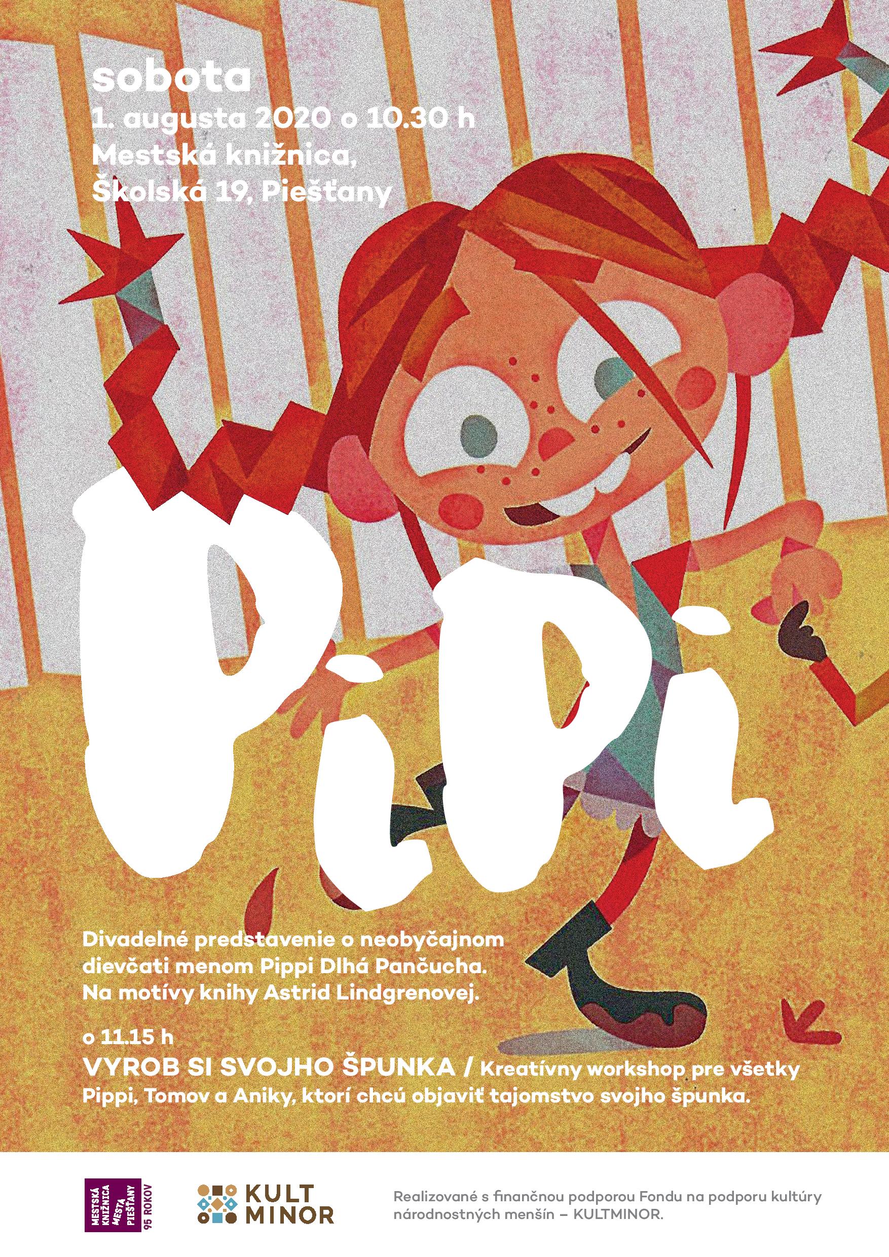 Miesto konania Piešťany (Slovensko) Descripton Divadelné predstavenie o neobyčajnom dievčati menom Pippi Dlhá Pančucha. Na motívy knihy Astrid Lindgrenovej. Účinkuje divadlo PIKI. Sprievodné podujatie k výstave Miro Duša - Bábky s dušou.