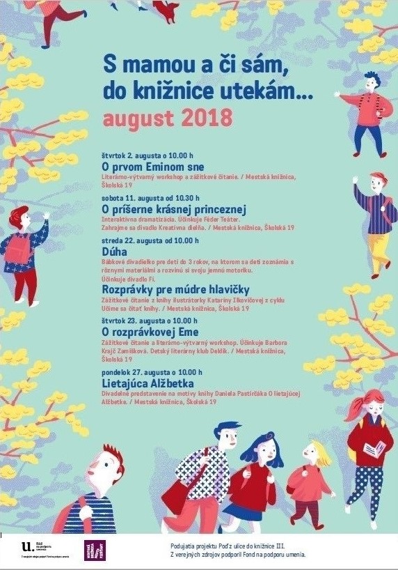 Date 29.06.2018 Annotation Zámerom projektu je reagovať na klesajúcu schopnosť mladej generácie čítať a rozumieť čítanému. V 3. ročníku projektu chceme zamerať pozornosť na skupinu detí v predškolskom veku, kedy si dieťa osvojuje základné zručnosti potrebné pre ďalší rozvoj jeho osobnosti. Čítanie podporuje u detí predstavivosť, morálne myslenie, formuje ich postoj k životu. Ak čítajú rodičia s deťmi, prehlbuje sa i vzťah medzi nimi. V spolupráci s rodičmi a prostredníctvom zaujímavých aktivít chceme prispieť k budovaniu pozitívneho vzťahu detí ku knihe a položiť tak základy ich celoživotného vzdelávania. Prostredníctvom detského literárneho klubu chceme zároveň pracovať na prehlbovaní vzťahu k čítaniu u detí školského veku. Cieľom projektu je osloviť rodičov s malými deťmi, vzbudiť záujem o knihu a čítanie, umožniť deťom rozvíjať svoju tvorivosť a fantáziu netradičnou formou a cez atraktívnu ponuku získať nových čitateľov. Aktivity projektu budú zamerané na jednotlivé skupiny našich užívateľov. Pre rodičov s deťmi predškolského veku pripravíme tvorivé workshopy a interaktívne dramatizácie. Školákom ponúkneme podujatia zamerané na pozitívne trávenie voľného času v knižnici. Knihy predstavíme v rôznych podobách (zážitkové čítanie, dramatizácie, literárno-výtvarné workshopy) a prostredníctvom aktivít, ktoré im umožnia budovať svoje estetické cítenie a podporia tak ich intelektuálny rozvoj. Cieľovou skupinou projektu sú predovšetkým deti predškolského veku, ich rodičia, starí rodičia a pedagógovia.