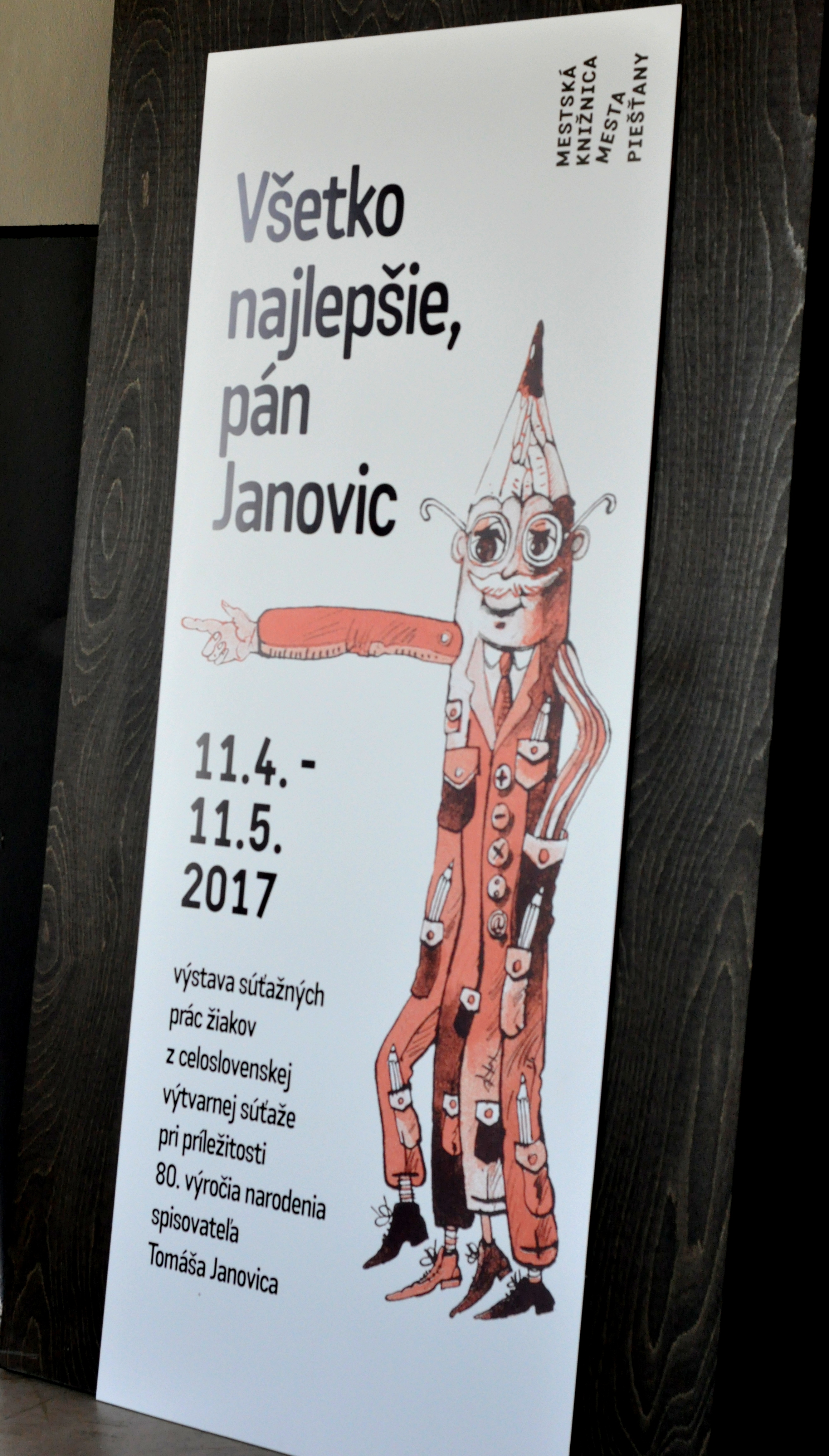 Miesto konania Piešťany (Slovensko) Popis Výstava ocenených prác celoslovenskej výtvarnej súťaže pri príležitosti 80. výročia narodenia spisovateľa Tomáša Janovica.