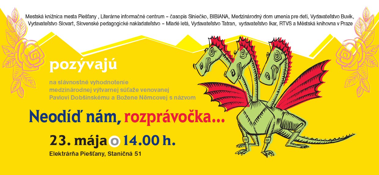 Miesto konania Piešťany (Slovensko) Popis Slávnostné vyhodnotenie medzinárodnej výtvarnej súťaže venovanej Pavlovi Dobšinskému a Božene Němcovej, spojené s divadelným predstavením študentov DF VŠMU. Organizátor Mesto Piešťany