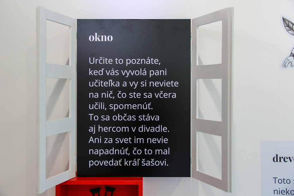 Výstava je koncipovaná ako maxislovník slov, ktoré sa používajú v divadle. Vychádza z publikácie Slovník divadelných profesionalizmov autoriek Oľgy Orgoňovej, Aleny Bohunickej, Zdeny Pašuthovej a Barbory Krajč Zamiškovej. Publikáciu vydala Vysoká škola múzických umení v Bratislave v decembri minulého roka. Niektoré z profesionalizmov boli vybrané a upravené pre detského čitateľa a v mesiacoch február až jún 2020 uverejňované v časopise Slniečko. Súbežne v tomto období vznikali podklady k výstave. Interaktívna expozícia pozostáva z veľkoplošných ilustrácií, z reálnych artefaktov, z originálov kresieb bábkarských scénografov a divadelných plagátov. Autorkou výtvarného konceptu je Michaela Zajačková. Kurátorsky sa na nej podieľa Barbora Krajč Zamišková. Pod výtvarno-priestorové riešenie, technickú realizáciu a ilustrácie sa podpísali Michaela Zajačková, Juraj Žilinčár, Michaela Urbanová, Sara Bahulová. Výpožičky objektov, nákresov a plagátov pochádzajú zo Slovenského centra dizajnu, od Juraja Poliaka, Barbory Šajgalíkovej, Miloša Koptáka, Kataríny Ilkovičovej, Matúša Lelovského a študentov KBT DF VŠMU. Výstavu dramaturgicky zostavila Margita Galová a potrvá v priestoroch mestskej knižnice do 16. októbra 2020. V prípade komentovanej prehliadky je pre skupiny návštevníkov pripravený zaujímavý divadelný kvíz. Výtvarná expozícia je súčasťou medzinárodného festivalu rozhlasových rozprávok Zázračný oriešok. Kniha v rozhlase – rozhlas v knihe, ktorého 11. ročník sa uskutoční v dňoch 28. septembra – 1. októbra 2020 v Piešťanoch.Organizátor Mestská knižnica mesta Piešťany