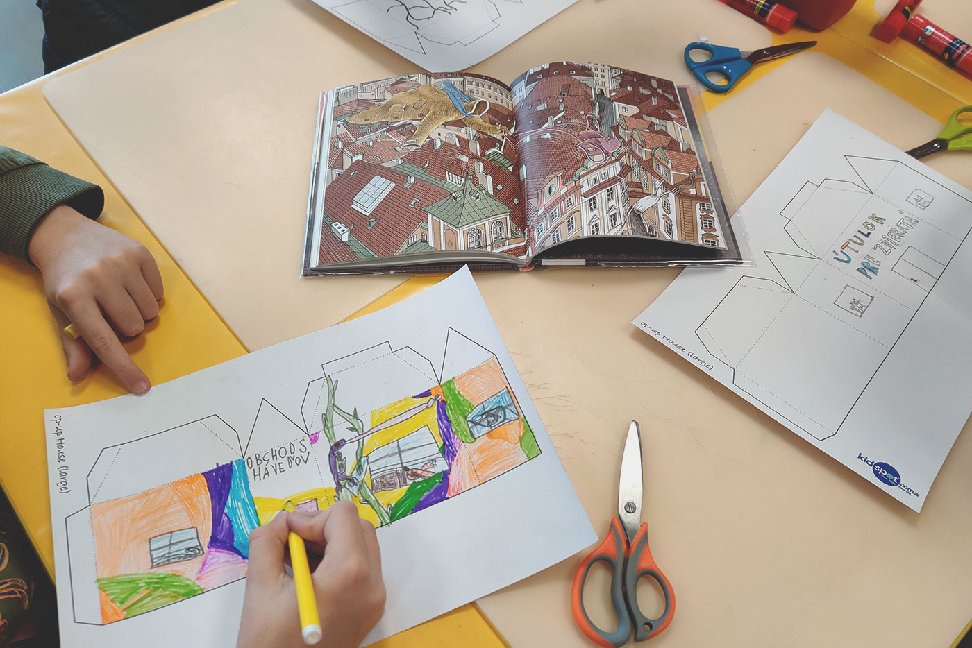Miesto konania Piešťany (Slovensko) Popis Literárno-výtvarný workshop na motívy knihy Marky Míkovej a Galiny Miklínovej Kabát a kabelka.