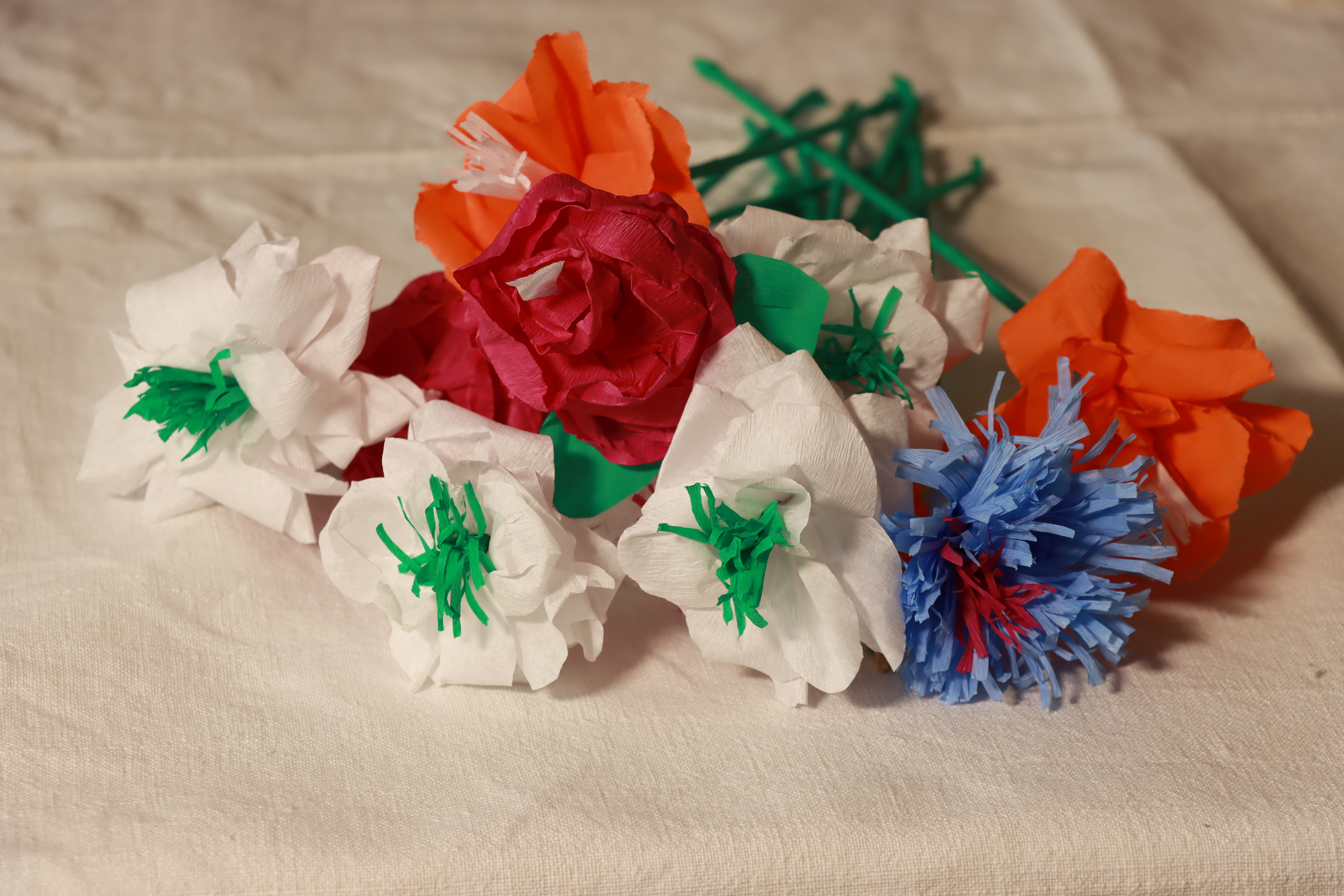 Poznámky celkový pohľad na papierové kvety, ktorými sa zdobil svadobný koláč