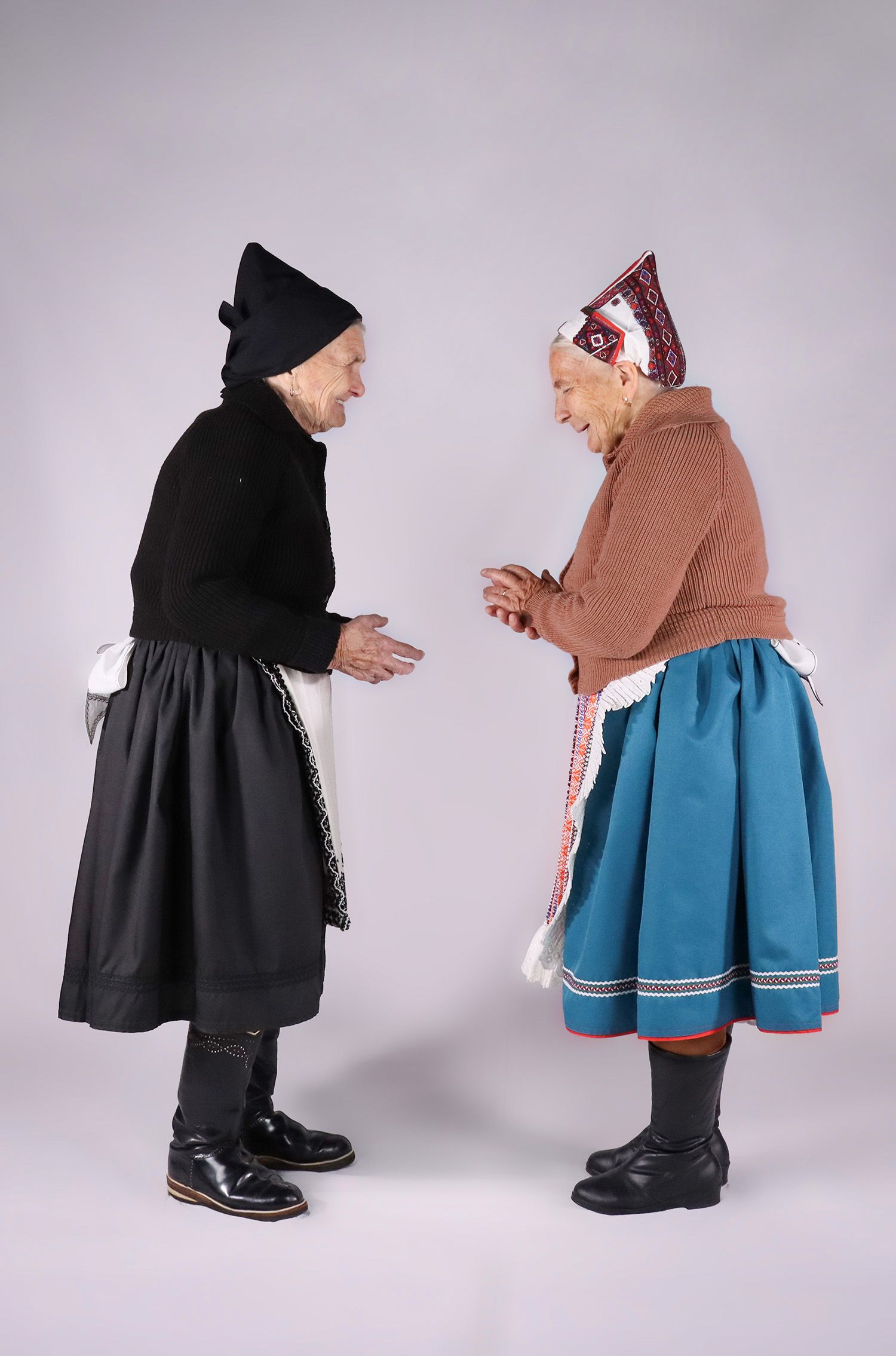 Obidve majú na nohách obuté „remenie“ – kožené čižmy. Doplnkom odevu je „zamaťik“ – ozdobná šnúrka alebo „patricki“ – koráliky uviazané okolo krku, ktoré obidve ženy nosia aj v domácom prostredí.Poznámky celkový pohľad na polokroje zboku Majiteľ/-ka diela Pohančaníková, Anna (1940)