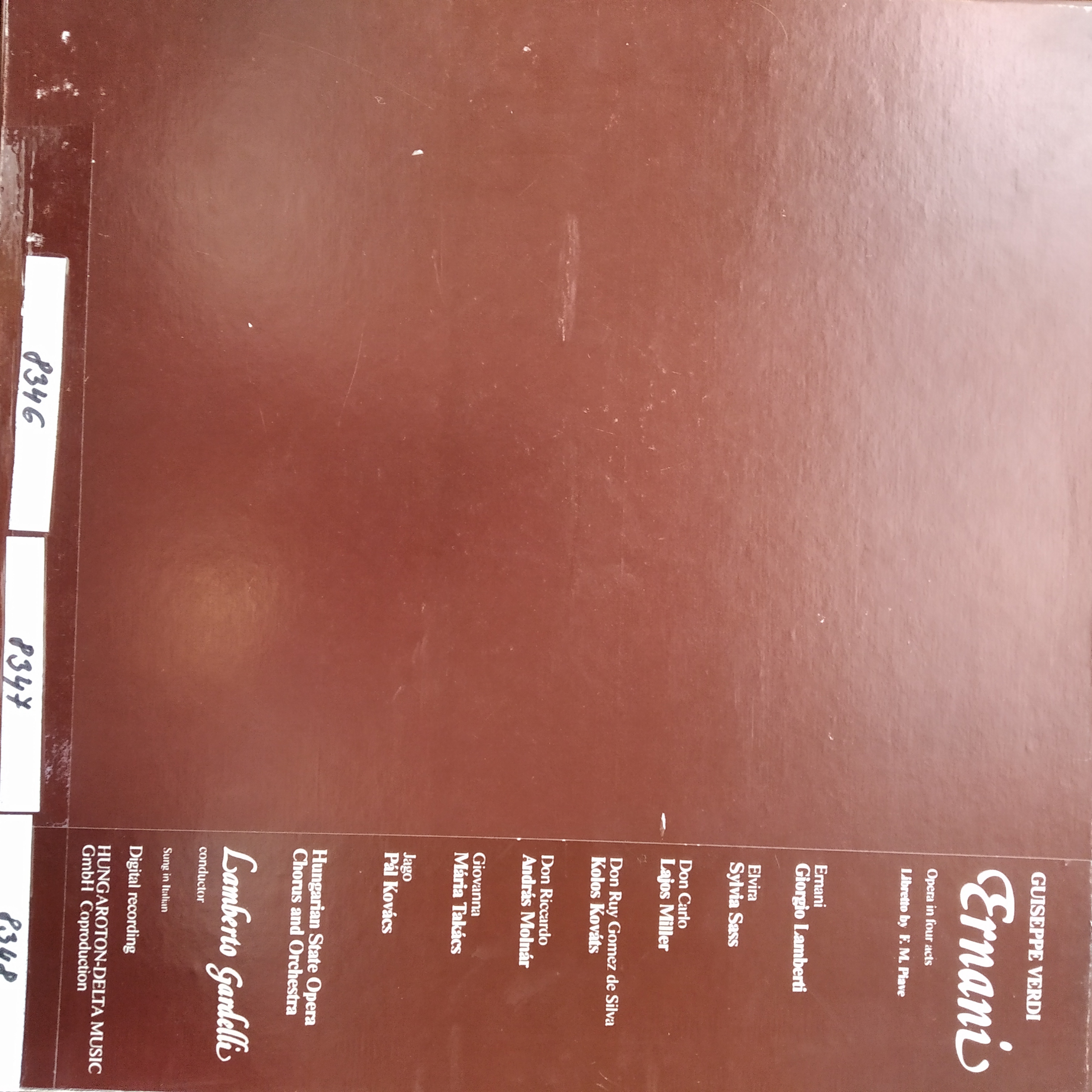 Title Ernani zvukový záznam Author info Giuseppe Verdi Author Verdi Giuseppe 1813-1901 Issue data Maďarsko : Hungaroton , 1982. - 3 platne, 31x31 cm + 1 vlož. príl. Document kind JGP Language Hungarian Country Hungary Database xkni - BOOKS Copy count 3, currently available 0 File name Downloaded Size Comment IMG_20220314_151238.jpg 3 2.8 MB Call number Track No. Location Sublocation Info A 008346 008346 Knižnica Ružinov Bratislava Na úvrati nedost. A 008347 008347 Knižnica Ružinov Bratislava Na úvrati nedost. A 008348 008348 Knižnica Ružinov Bratislava Na úvrati nedost.