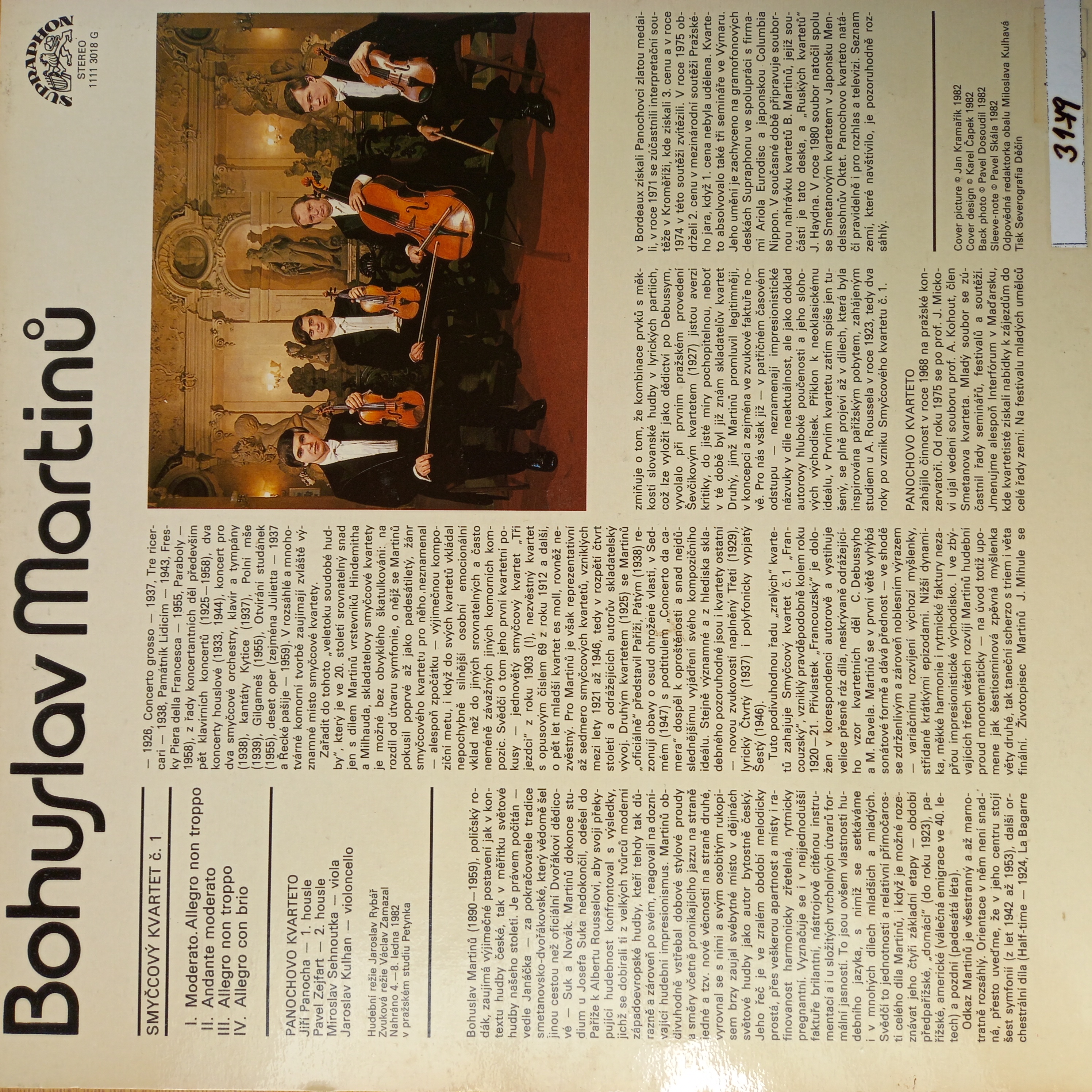 Title Smyčcový kvartet č.1 zvukový záznam Author info Bohuslav Martinů Author Martinů Bohuslav 1890-1959 Issue data Praha : Supraphon , 1982. - 1 platňa, 31x31 cm Document kind JGP Language Czech Country -CS Database xkni - BOOKS Copy count 1, currently available 0, at library only 1 Call number Track No. Location Sublocation Info A 003179 003179 Knižnica Ružinov Bratislava Na úvrati In-Library Use Only