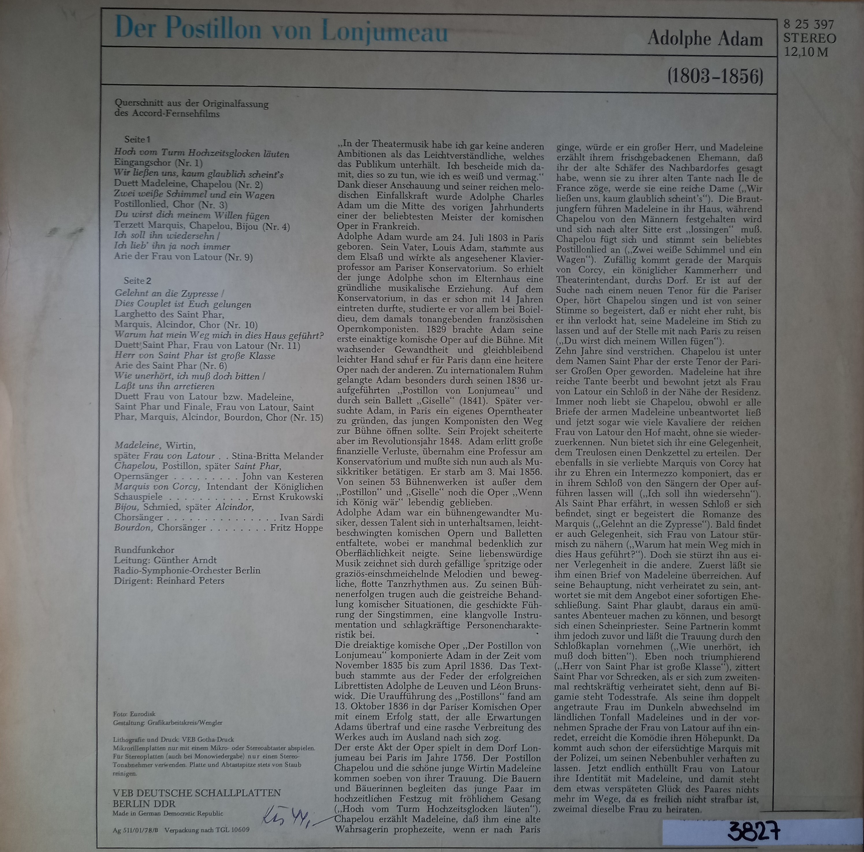 Title Der Postillon von Lonjumeau zvukový záznam Author info Adolphe Adam Author Adam Adolphe Issue data NDR : Eterna , 1978. - 1 platňa, 31x31 cm Document kind JGP Language German Country Germany Database xkni - BOOKS Copy count 1, currently available 0, at library only 1 Call number Track No. Location Sublocation Info A 003827 003827 Knižnica Ružinov Bratislava Na úvrati In-Library Use Only