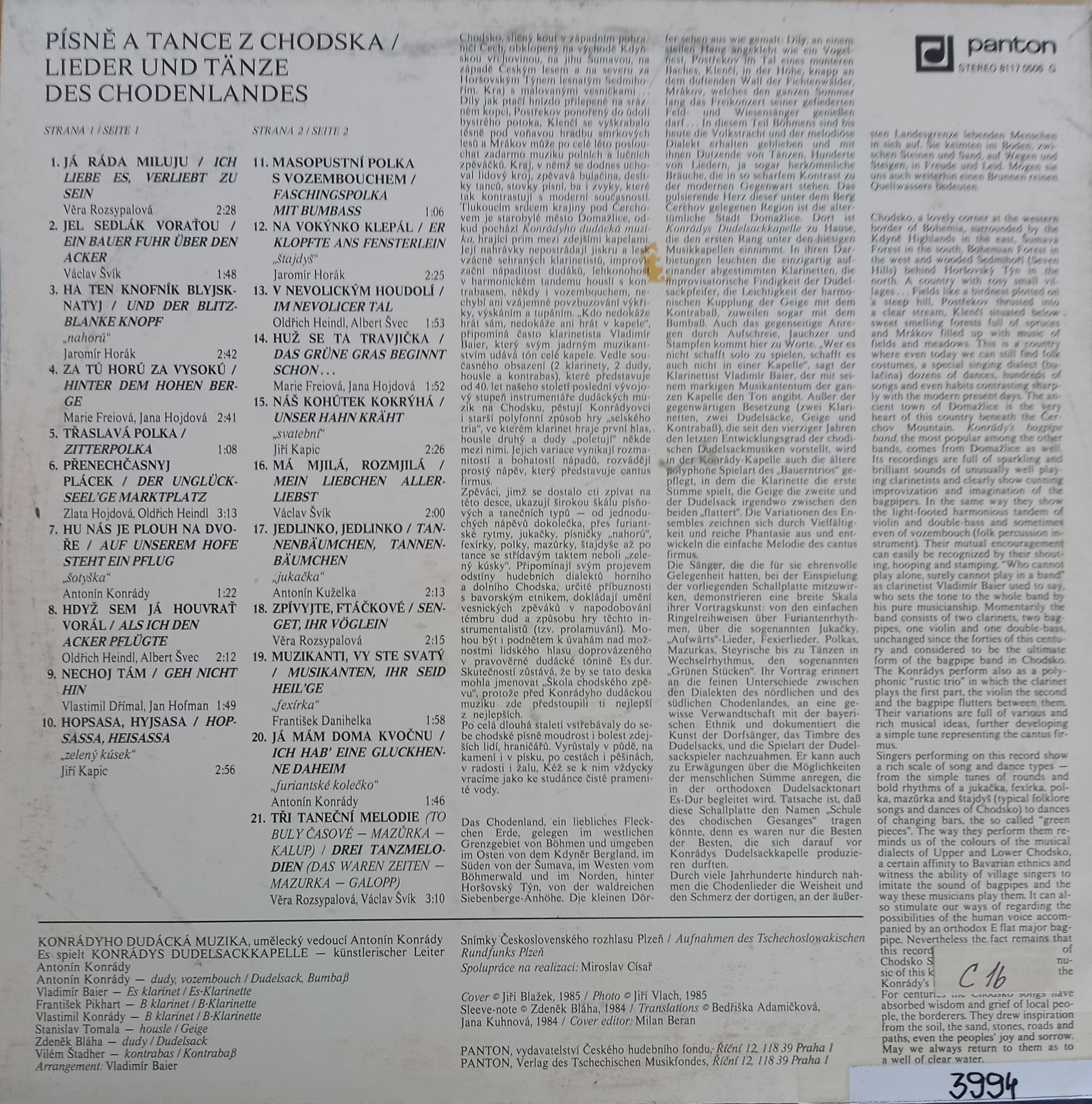 Title Písně a tance z Chodska zvukový záznam Issue data Praha : Panton , 1985. - 1 platňa, 31x31 cm Document kind JGP Language Czech Country -CS Database xkni - BOOKS Copy count 1, currently available 0, at library only 1 Call number Track No. Location Sublocation Info A 003994 003994 Knižnica Ružinov Bratislava Na úvrati In-Library Use Only