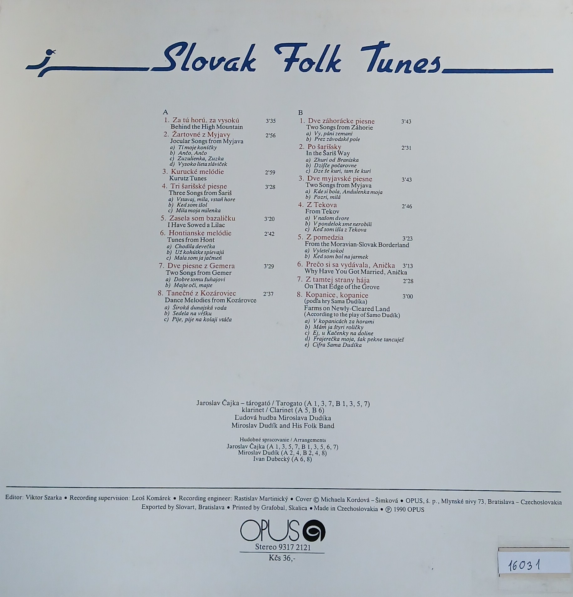 Title Slovak Folk Tunes zvukový záznam Issue data Bratislava : Opus , 1990. - 1 platňa, 31x31 cm Document kind JGP Language English Country Slovak Republic Database xkni - BOOKS Copy count 1, currently available 0, at library only 1 Call number Track No. Location Sublocation Info A 016031 016031 Knižnica Ružinov Bratislava Na úvrati In-Library Use Only