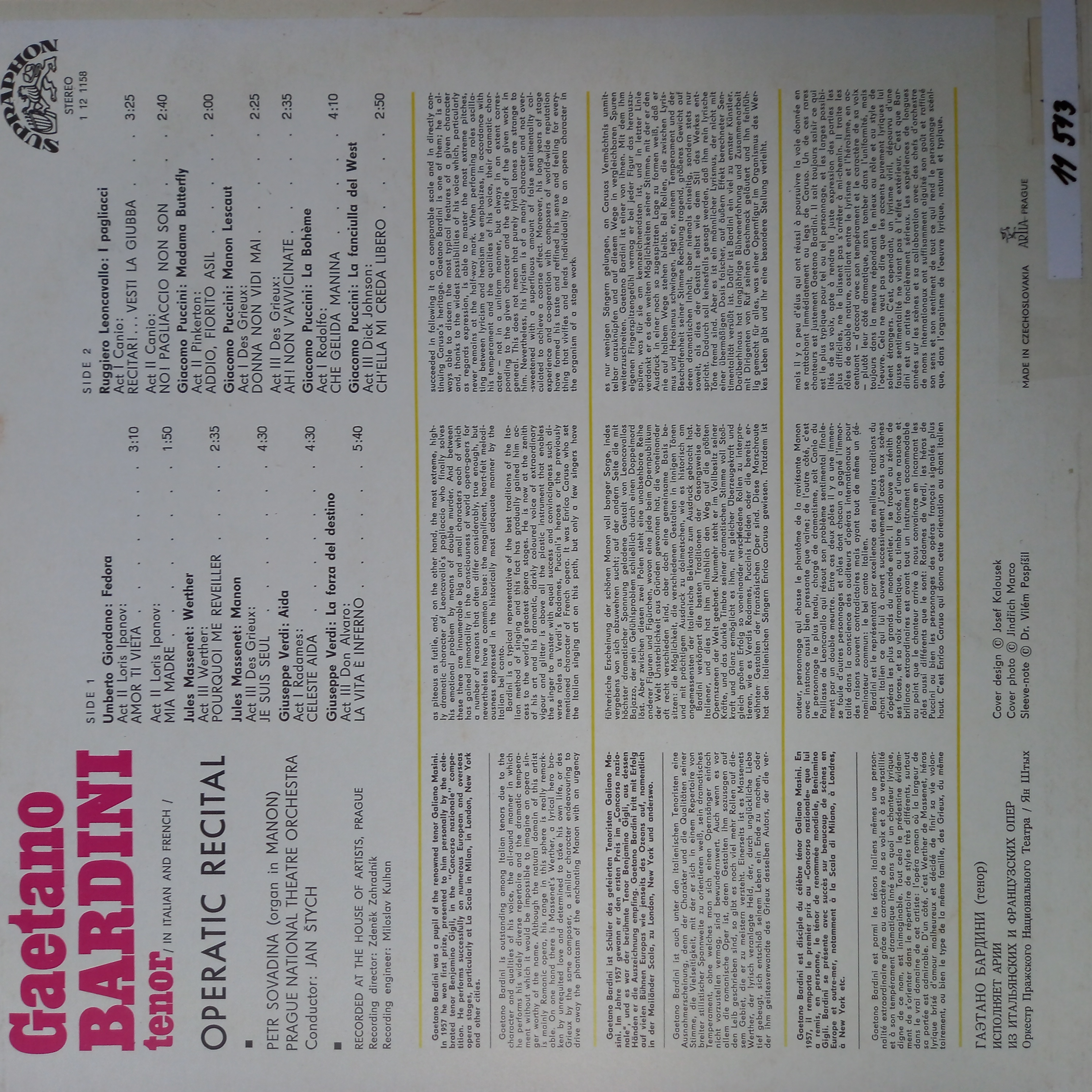 Názov Gaetano Bardini Operatic Recital zvukový záznam Aut.údaje Gaetano Bardini Autor Bardini Gaetano Vyd.údaje Praha : Supraphon , 1972. - 1 platňa, 31x31 cm Druh dok. JGP Jazyk dok. čeština Krajina -CS Báza dát xkni - KNIHY Počet ex. 1, z toho voľných 0, prezenčne 1 Signatúra Prír.číslo Lokácia Dislokácia Info A 011513 011513 Knižnica Ružinov Bratislava Na úvrati len prezenčne