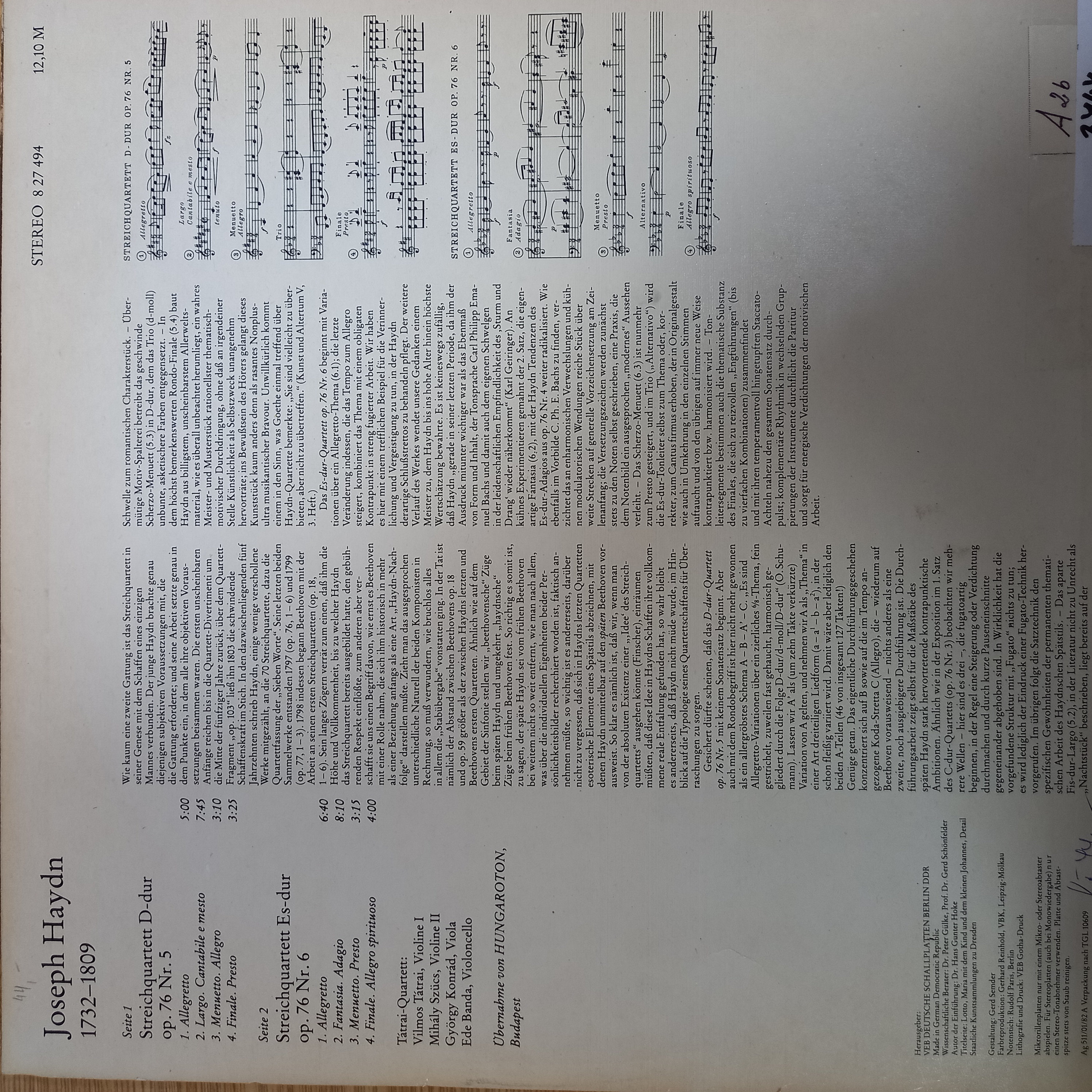 Streichquartett D dur op. 76 Nr. 5