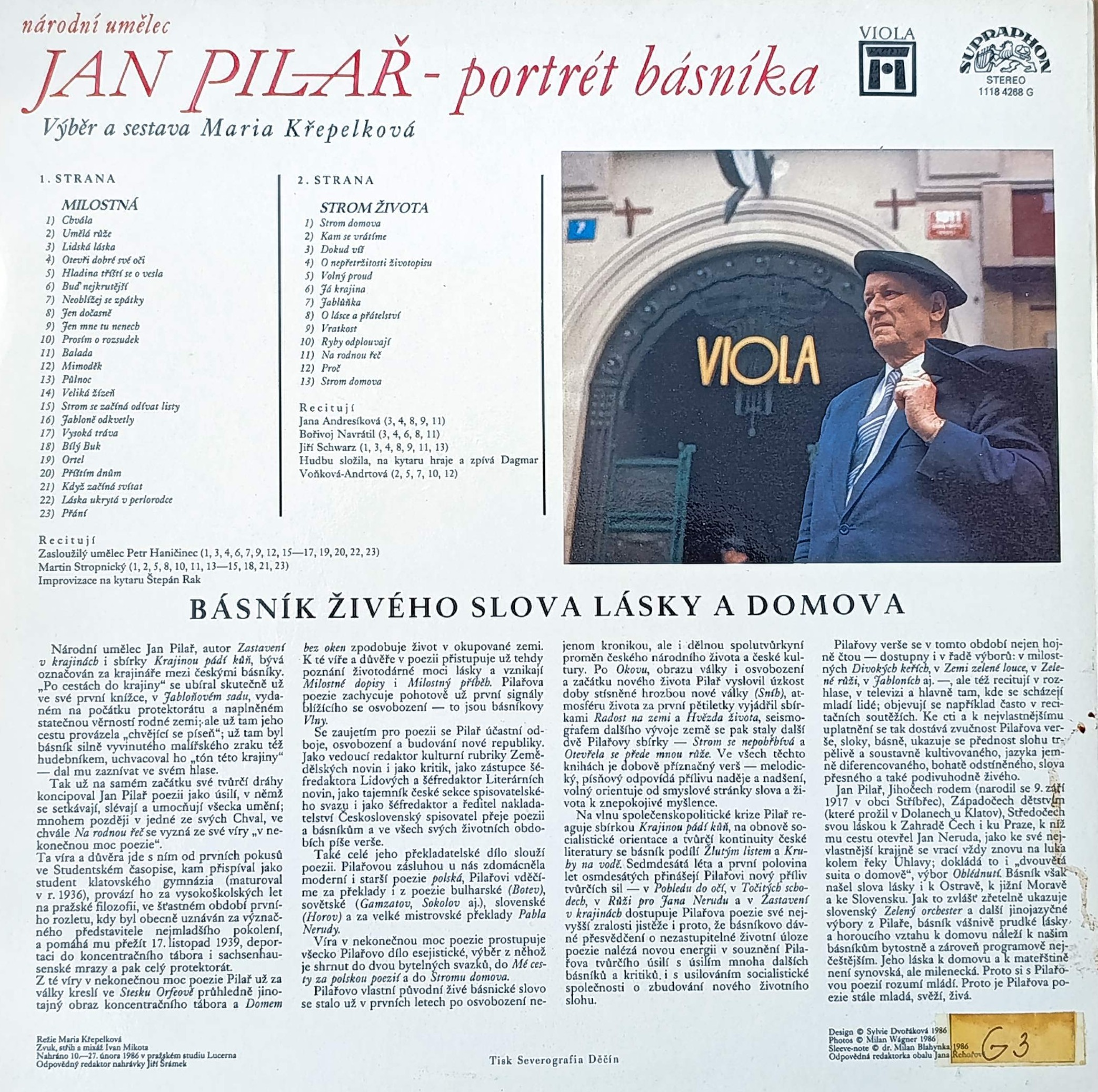Názov Národní umělec Jan Pilař zvukový záznam Aut.údaje Jan Pilař Autor Pilař Jan Vyd.údaje Praha : Supraphon , 1987. - 1 platňa, 31x31 cm Poznámky Recitovaná poézia Druh dok. JGP Jazyk dok. čeština Krajina -CS Báza dát xkni - KNIHY Počet ex. 1, z toho voľných 0, prezenčne 1 Signatúra Prír.číslo Lokácia Dislokácia Info A 011142 011142 Knižnica Ružinov Bratislava Na úvrati len prezenčne