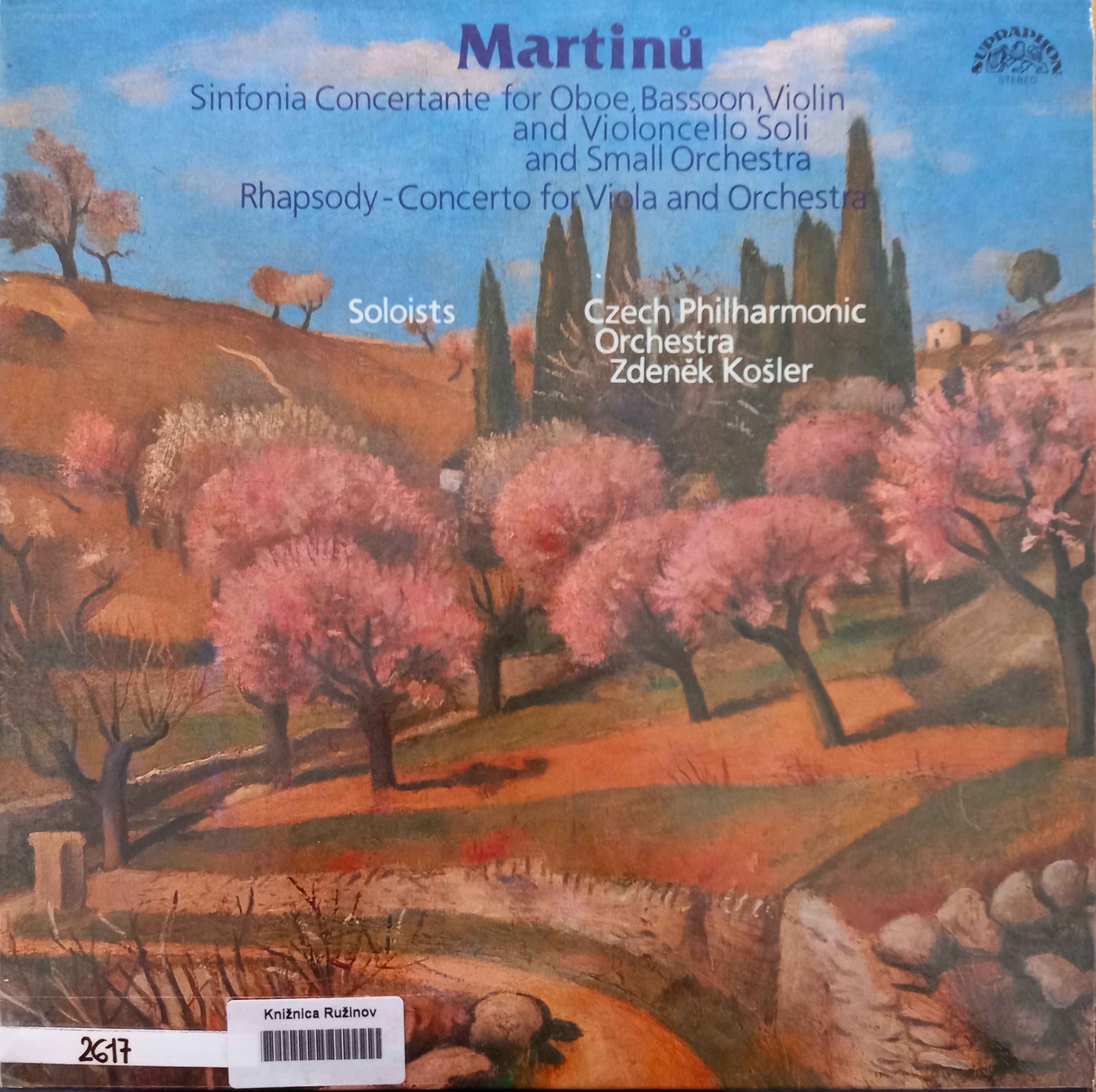 Názov Rapsódie pro violu a orchestr Koncertantní symfonie pro hoboj - zvukový záznam Aut.údaje Bohuslav Martinů Autor Martinů Bohuslav 1890-1959 Vyd.údaje Praha : Supraphon , 1984. - 1 platňa, 31x31 cm Druh dok. JGP Jazyk dok. čeština Krajina -CS Báza dát xkni - KNIHY Počet ex. 1, z toho voľných 0, prezenčne 1 Signatúra Prír.číslo Lokácia Dislokácia Info A 002617 002617 Knižnica Ružinov Bratislava Na úvrati len prezenčne