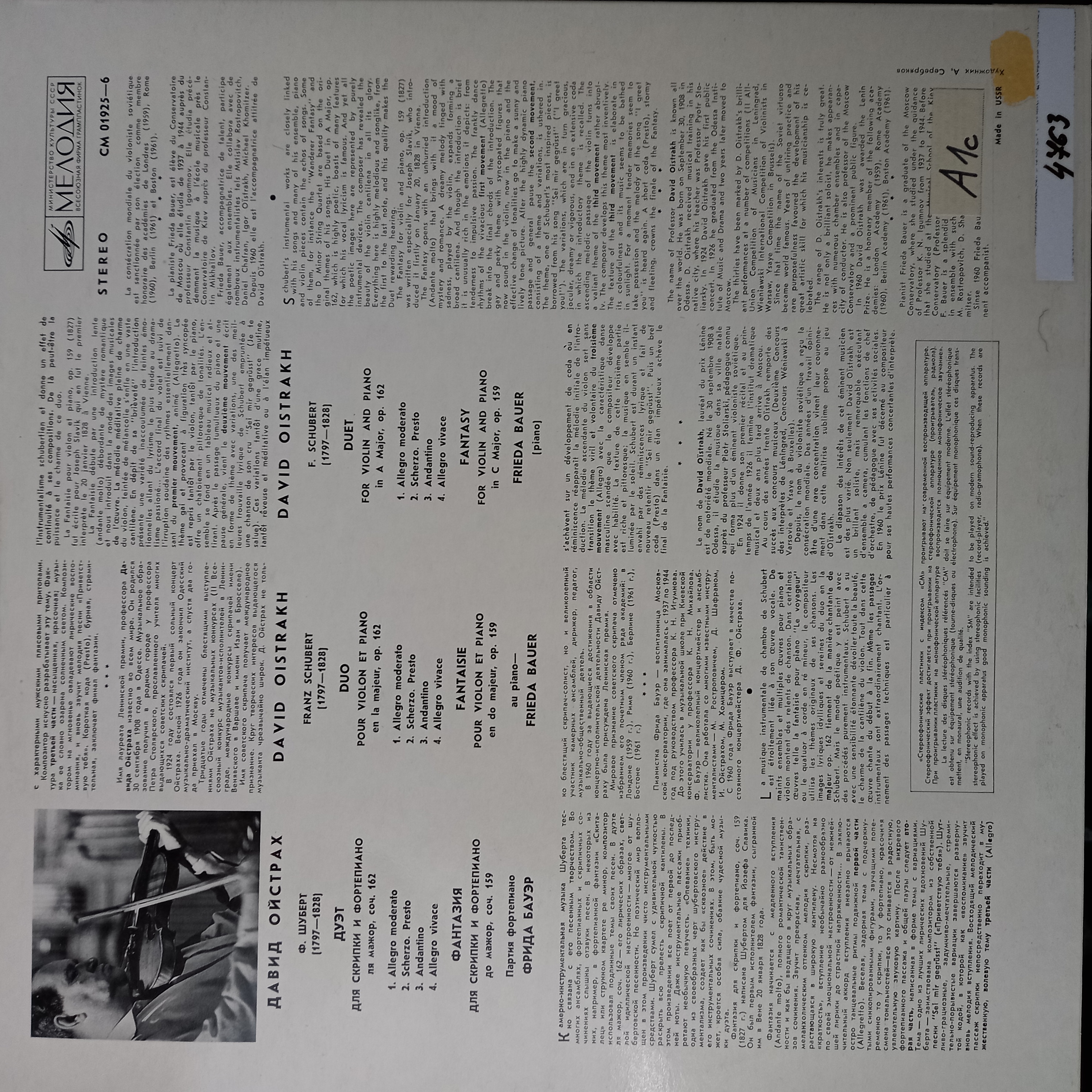 Názov Duet for violin and piano Fantasia for violin and piano zvukový záznam Aut.údaje Franz Schubert, David Ojstrach Autor Schubert Franz 1797-1828 Spoluautori Ojstrach David Vyd.údaje ZSSR : Melodija , [1970]. - 1 platňa, 31x31 cm Druh dok. JGP Jazyk dok. angličtina Krajina Ruská federácia Báza dát xkni - KNIHY Počet ex. 2, z toho voľných 0, prezenčne 2 Signatúra Prír.číslo Lokácia Dislokácia Info A 004763 004763 Knižnica Ružinov Bratislava Na úvrati len prezenčne A 004737 004737 Knižnica Ružinov Bratislava Na úvrati len prezenčne