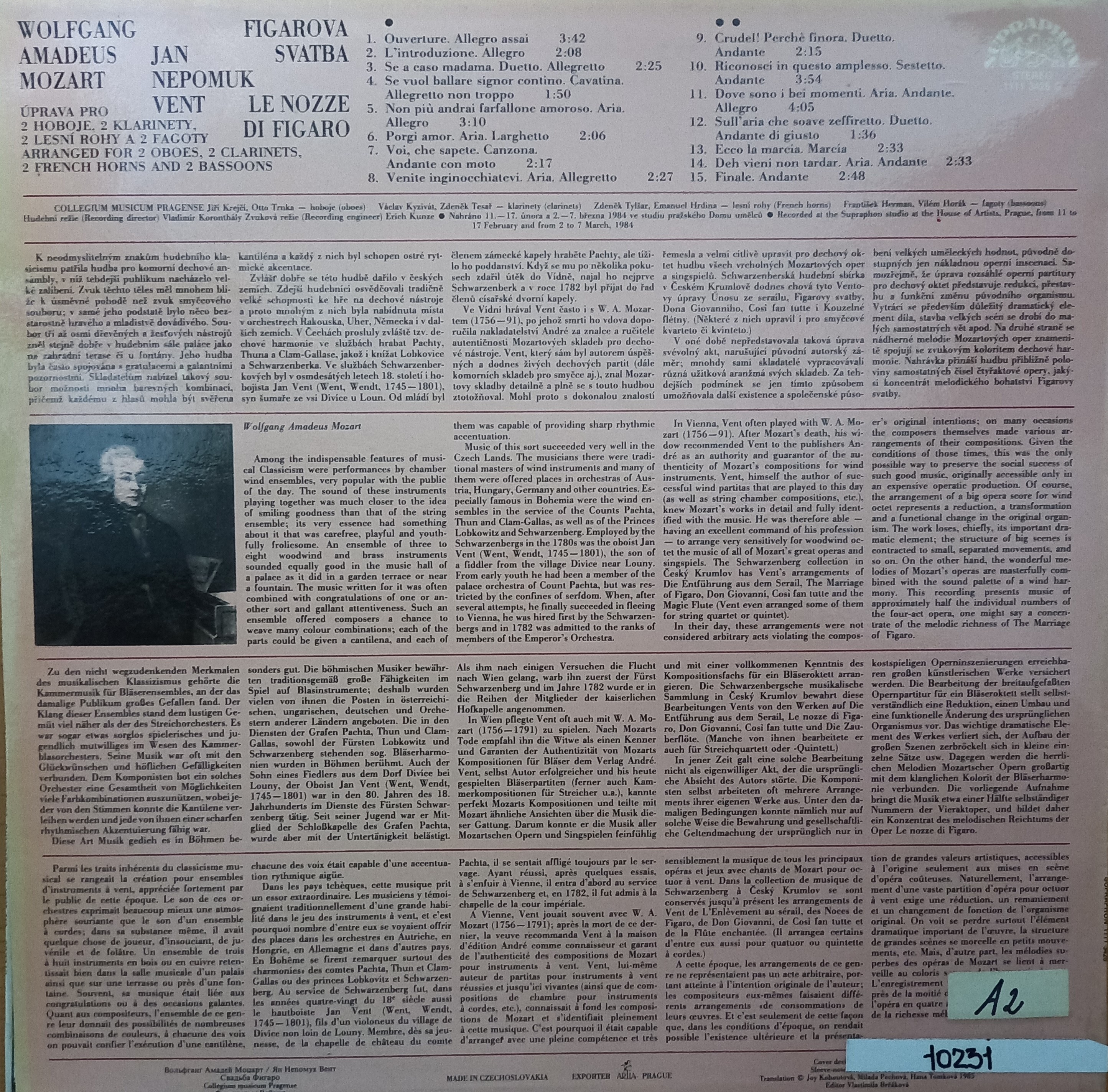 Názov Figarova svatba zvukový záznam : úprava pro 2 hoboje, 2 klarinety, 2 lesní rohy a 2 fagoty Aut.údaje Wolfgang Amadeus Mozart Autor Mozart Wolfgang Amadeus 1756-1791 Vyd.údaje Praha : Supraphon , 1986. - 1 platňa, 31x31 cm Druh dok. JGP Jazyk dok. angličtina, čeština, francúzština, nemčina Krajina -CS Báza dát xkni - KNIHY Počet ex. 1, z toho voľných 0, prezenčne 1 Signatúra Prír.číslo Lokácia Dislokácia Info A 010231 010231 Knižnica Ružinov Bratislava Na úvrati len prezenčne