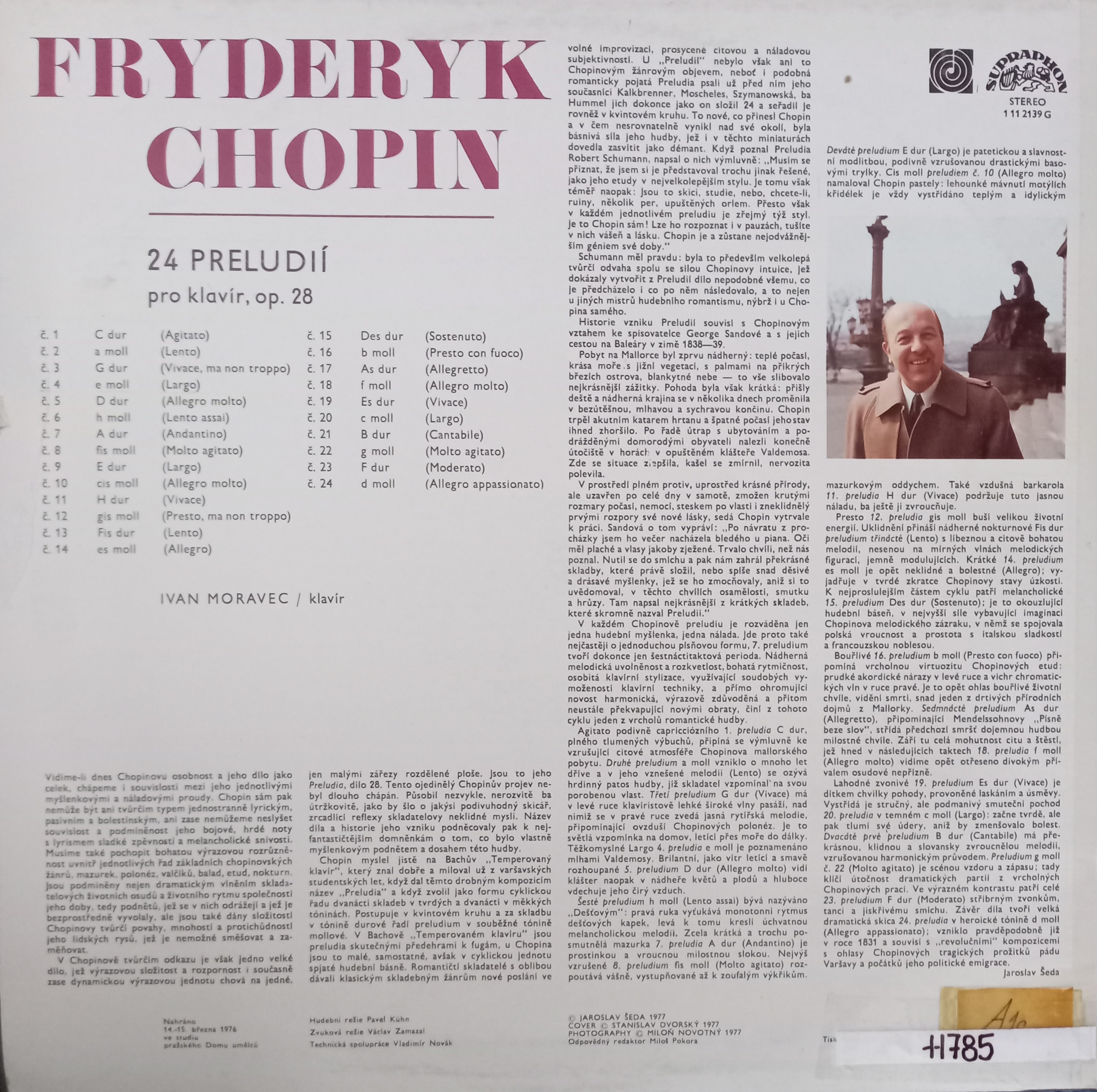 Názov 24 preludií pro klavír zvukový záznam Aut.údaje Fryderik Chopin Autor Chopin Fryderik 1810-1849 Vyd.údaje Praha : Supraphon , 1977. - 1 platňa, 31x31 cm Druh dok. JGP Jazyk dok. čeština Krajina -CS Báza dát xkni - KNIHY Počet ex. 1, z toho voľných 0, prezenčne 1 Signatúra Prír.číslo Lokácia Dislokácia Info A 011785 011785 Knižnica Ružinov Bratislava Na úvrati len prezenčne