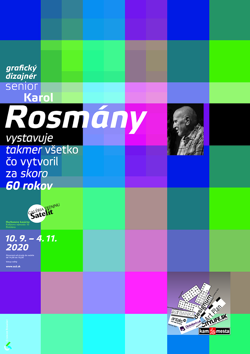 Poznámka Slovenské centrum dizajnu, Galéria dizajnu Satelit a Slovenské múzeum dizajnu predstavujú výber z celoživotnej tvorby slovenského grafického dizajnéra a typografa Karola Rosmányho od 60. rokov 20. storočia až po súčasnosť. Širšiemu publiku je známy najmä ako autor loga Verejnosti proti násiliu z roku 1989. Karol Rosmány (1937) vyštudoval architektúru, no odjakživa ho to ťahalo skôr k práci s písmom a k úžitkovej grafike. Od roku 1967 preto pôsobí ako grafický dizajnér v slobodnom povolaní. Jeho tvorbe dominuje knižná grafika pre rôzne slovenské vydavateľstvá (vytvoril vyše 3 000 návrhov knižných obálok), práca s písmom, logá, značky a kultúrne plagáty. Špecifickou kapitolou je jeho dlhoročná práca pre národný podnik Datasystém. Tejto škále grafickej tvorby zodpovedajú aj štyri časti výstavy – Typografia, Datasystém, Kniha a Geometria. Výstava je zostavená zo zbierkového fondu Slovenského múzea dizajnu, ktorému Karol Rosmány daroval v roku 2014 veľkú časť zo svojho diela. Báza dát Satelit