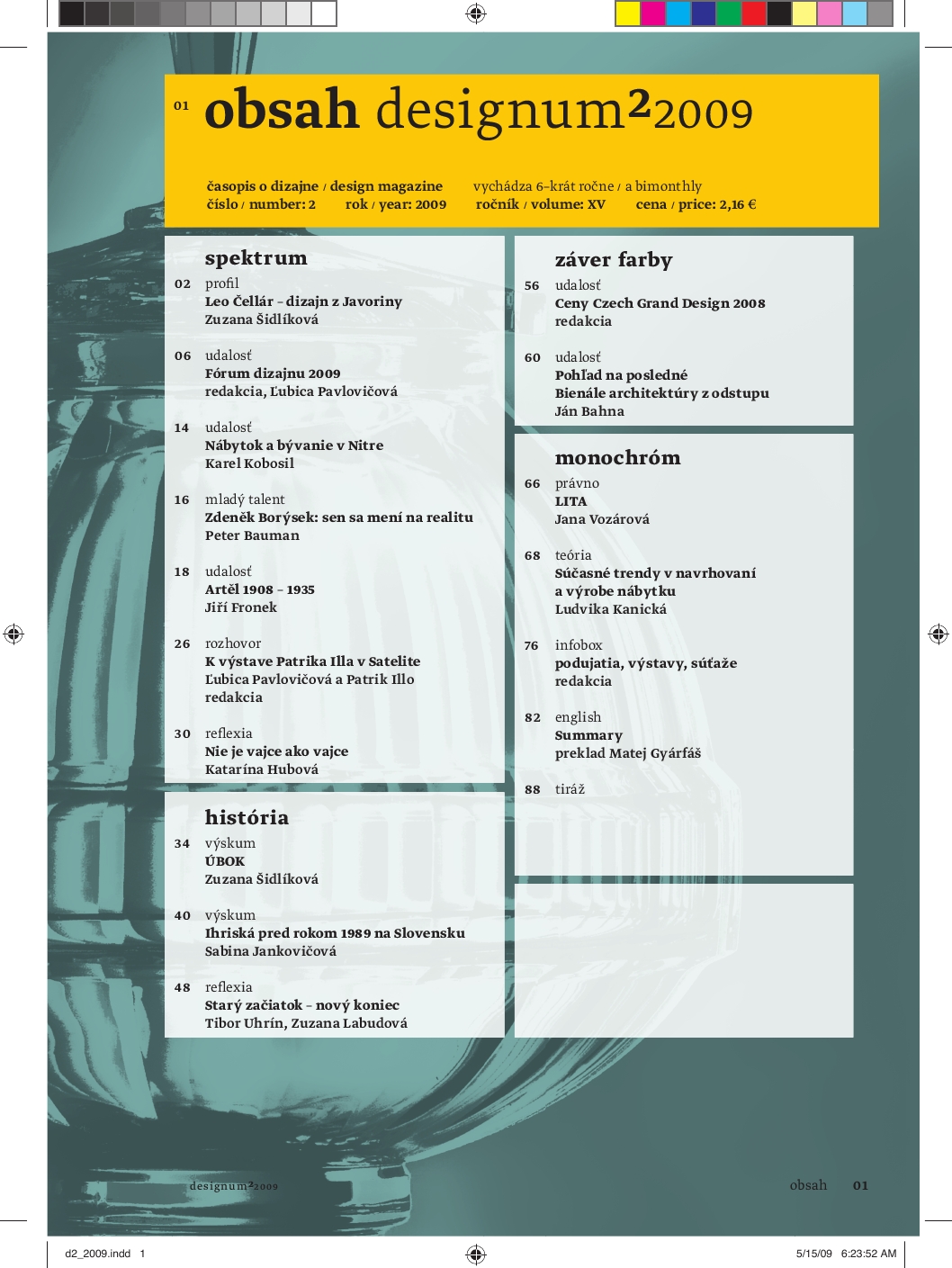 Názov Designum Podnázov revue dizajnu Roč., číslo Roč. XV., č. 2 (2009) Vyd.údaje Bratislava : Slovenské centrum dizajnu, 2009 Jazyk dok. slo - slovenčina Krajina SK - Slovenská republika ISSN 1335-034X Počet ex. 1, z toho voľných 1 Status prijaté Súborný záznam Súbor Časopisy a denníky - číslo periodika Časopisy Odkazy (15) - Databáza článkovej bibliografie