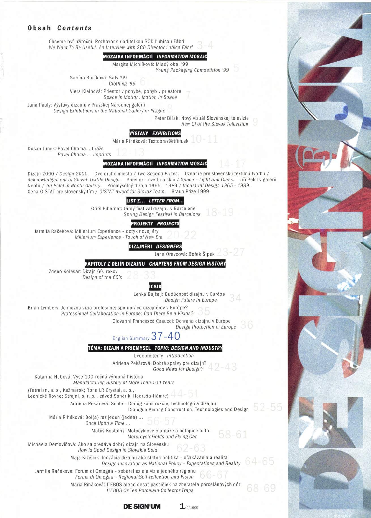 Názov Designum Podnázov revue dizajnu Roč., číslo Roč. VI., č. 2 (1999) Vyd.údaje Bratislava : Slovenské centrum dizajnu, 1999 Jazyk dok. slo - slovenčina Krajina SK - Slovenská republika ISSN 1335-034X Počet ex. 1, z toho voľných 1 Status prijaté Súborný záznam Súbor Časopisy a denníky - číslo periodika Časopisy Odkazy (6) - Databáza článkovej bibliografie