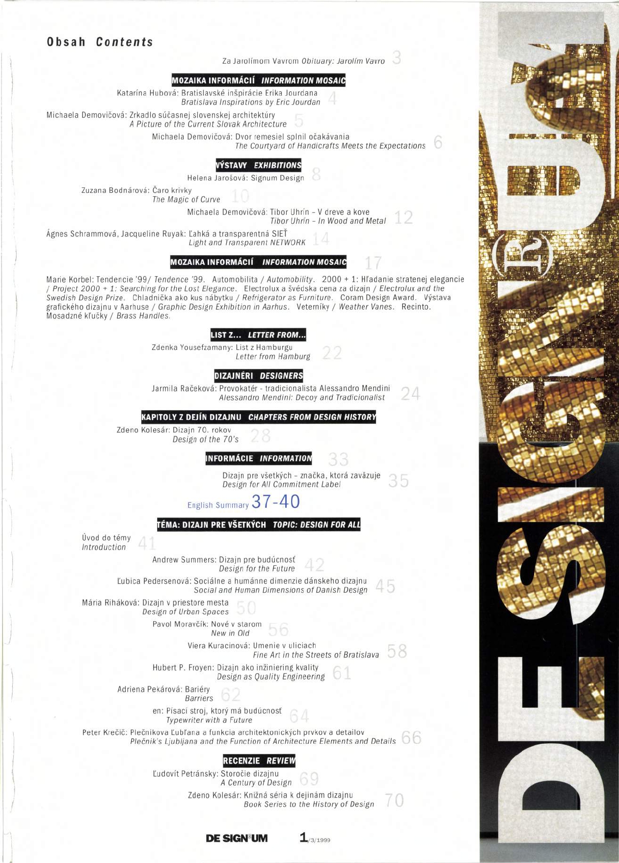 Názov Designum Podnázov revue dizajnu Roč., číslo Roč. VI., č. 3 (1999) Vyd.údaje Bratislava : Slovenské centrum dizajnu, 1999 Jazyk dok. slo - slovenčina Krajina SK - Slovenská republika ISSN 1335-034X Počet ex. 1, z toho voľných 1 Status prijaté Súborný záznam Súbor Časopisy a denníky - číslo periodika Časopisy Odkazy (2) - Databáza článkovej bibliografie