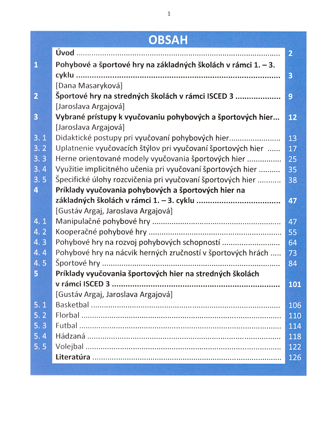 Title Vybrané prístupy k výučbe pohybových a športových hier na 1. - 3. cykle základných škôl a na stredných školách Author info Gustáv Argaj, Jaroslava Argajová, Dana Masaryková Author Argaj Gustáv
