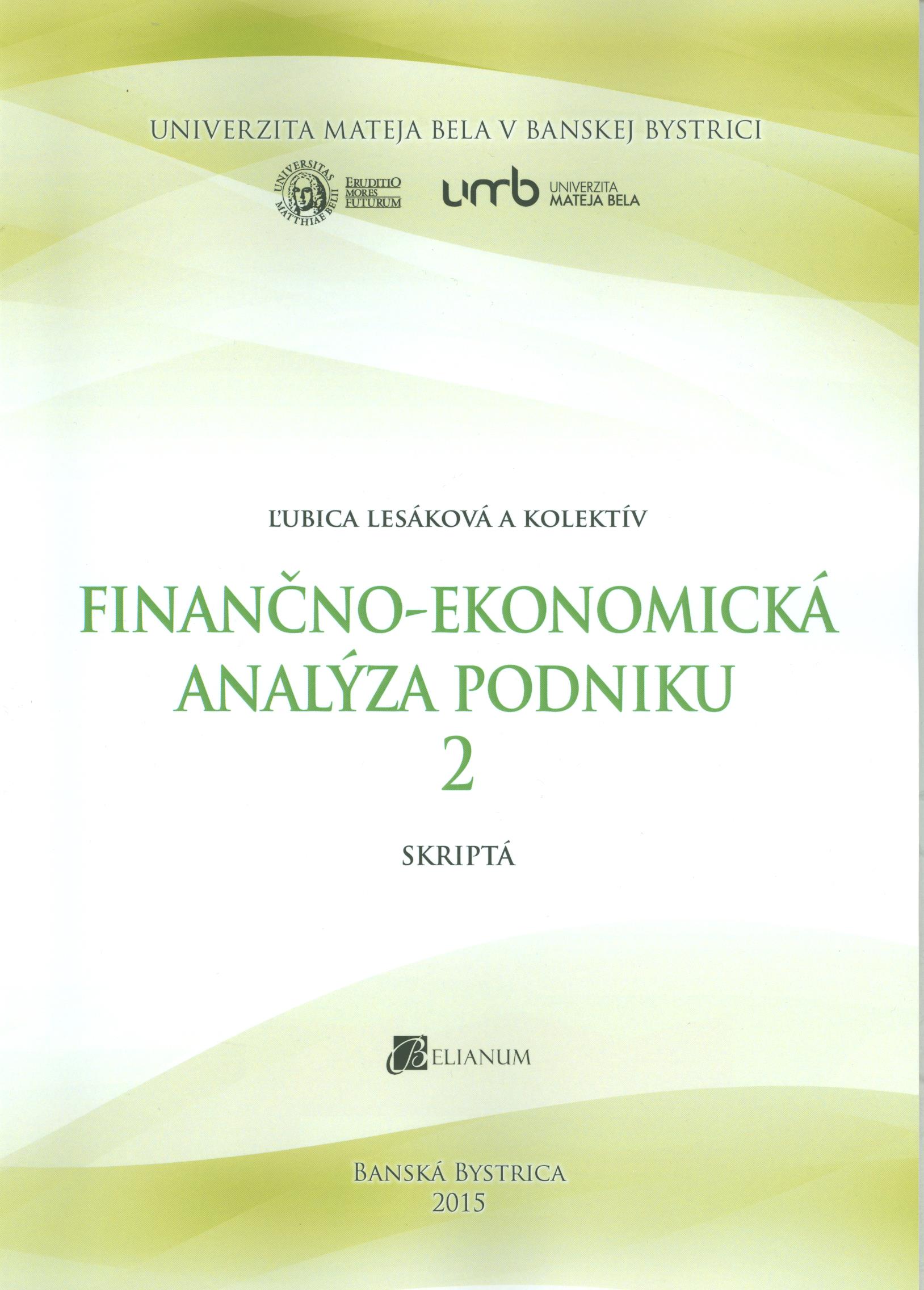 Názov Finančno-ekonomická analýza podniku 2 Podnázov [skriptá] Aut.údaje Ľubica Lesáková a kolektív Autor Lesáková Ľubica 1949-