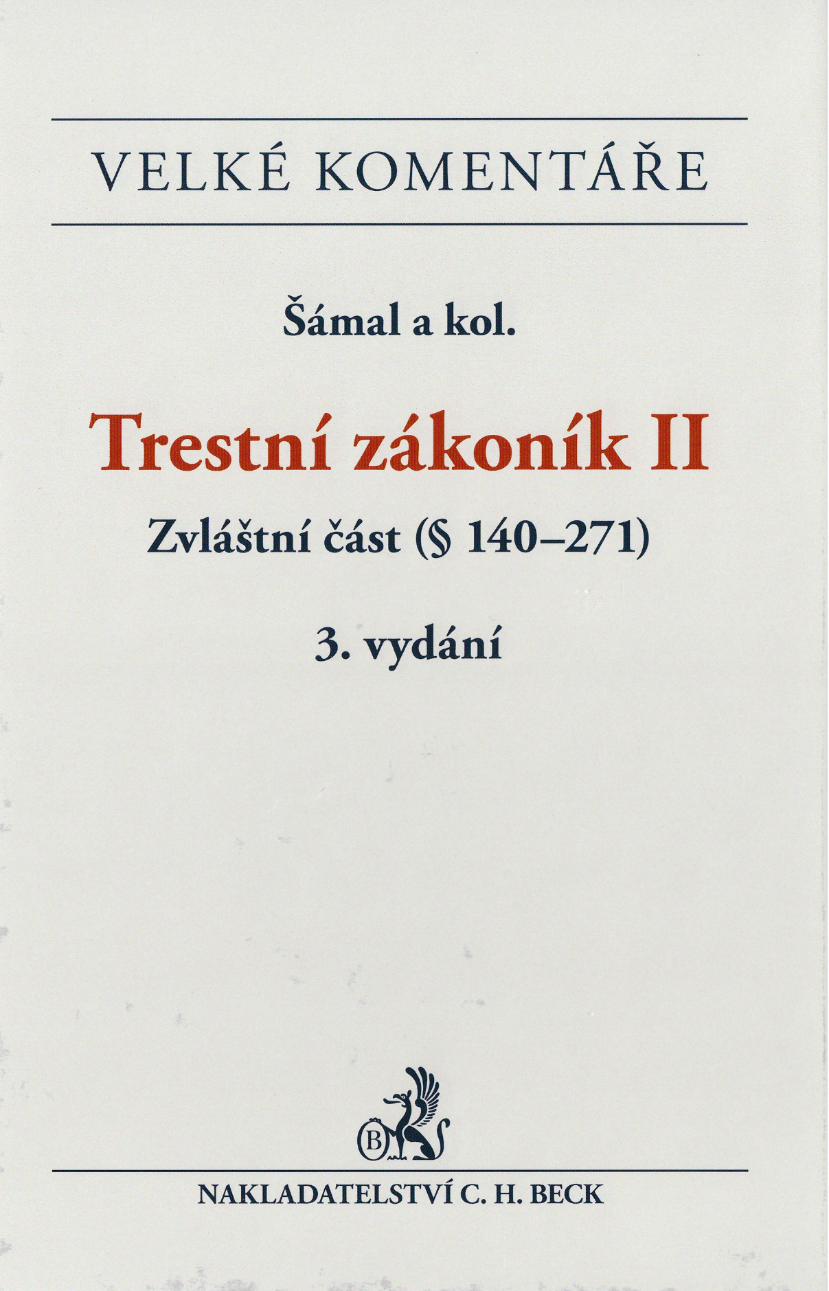 Názov Trestní zákonník II Podnázov komentář Časť.dok. [Zvláštní část]. § 140-271 Aut.údaje Pavel Šámal a kolektiv Autor Šámal Pavel